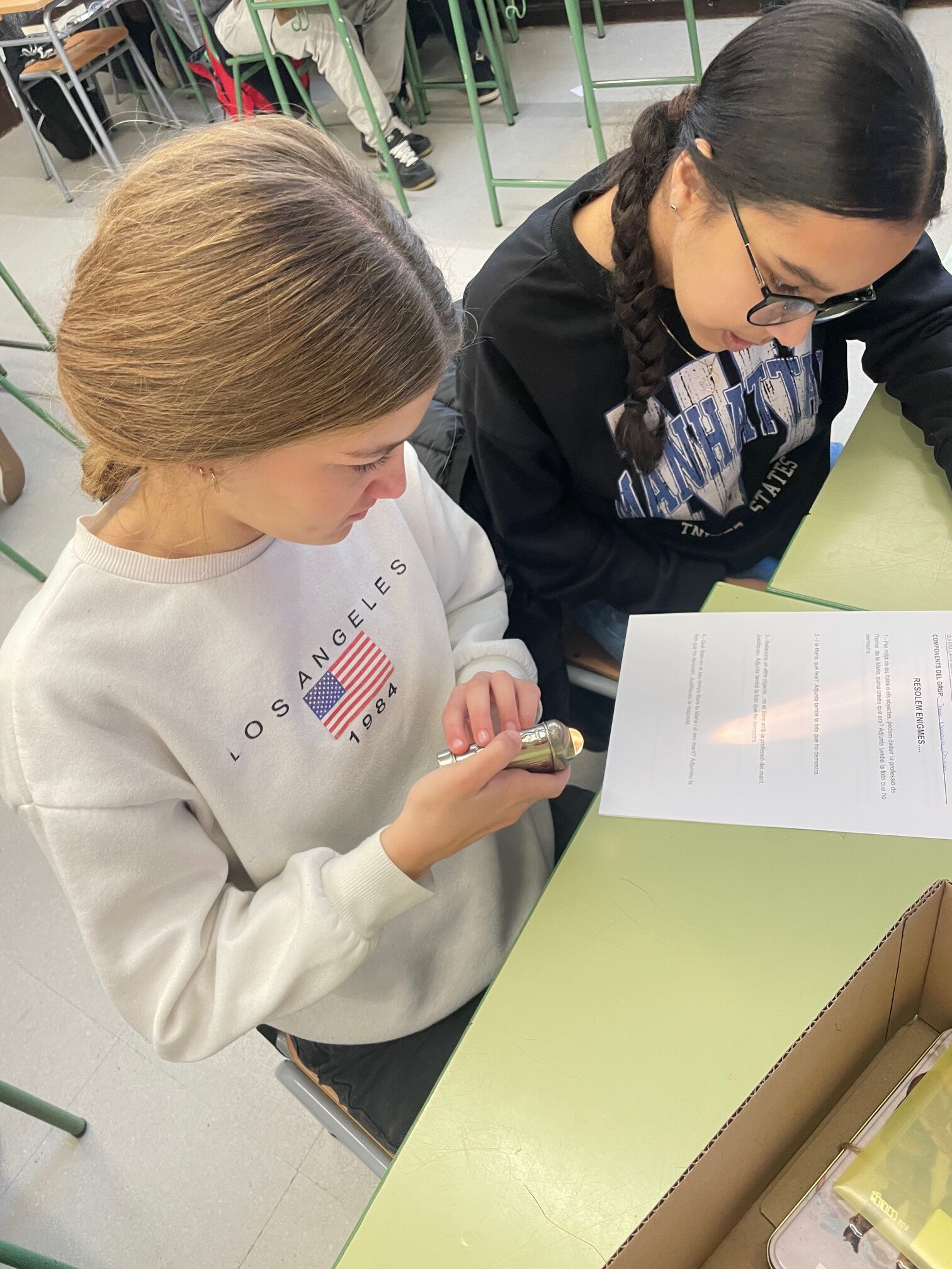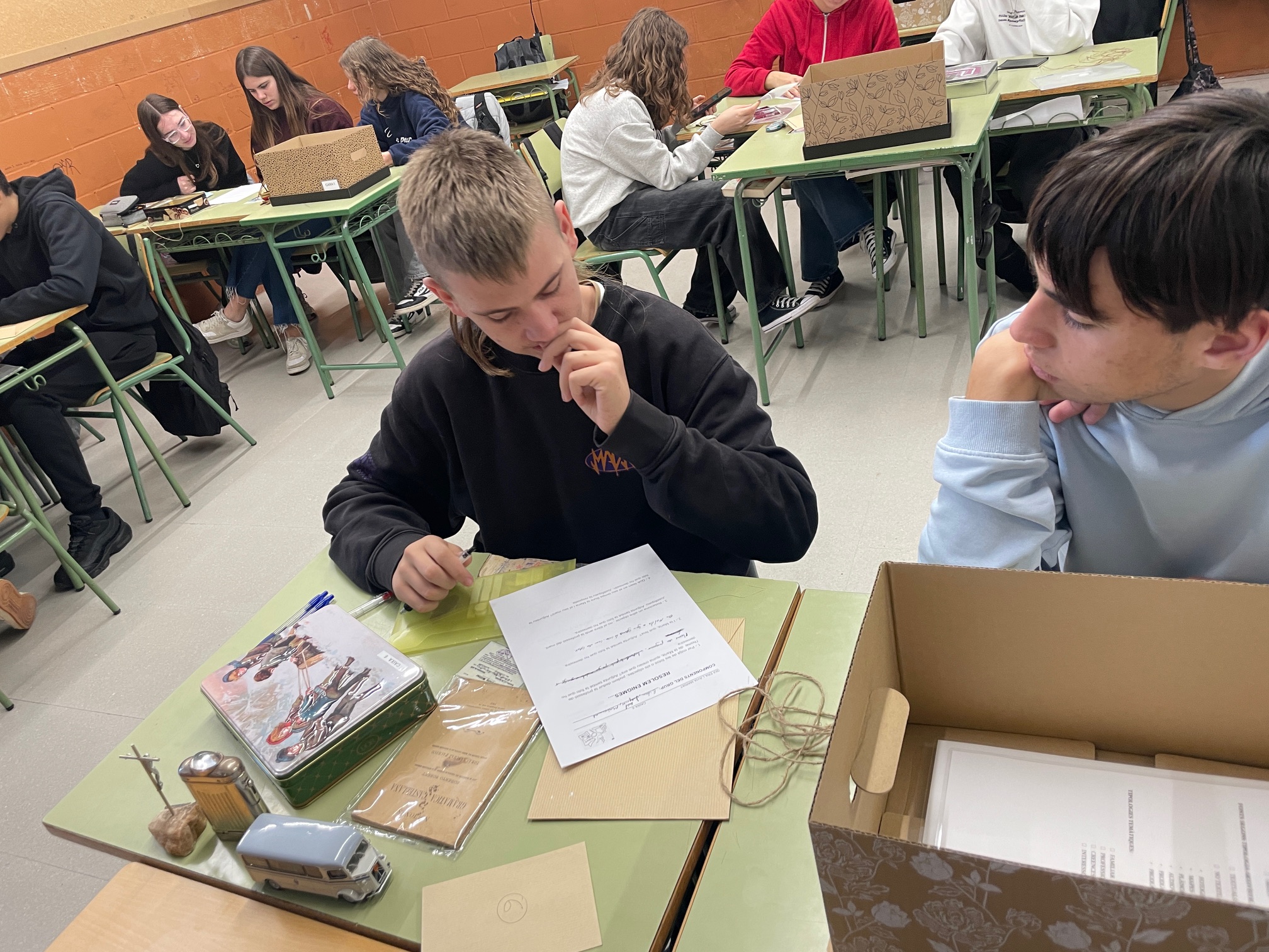 Aquests dies l’alumnat de Quart ha investigat sobre el que hi havia a la “Caixa de l’àvia”. Dins la Caixa hi havia objectes , fonts primàries i secundàries, tot necessari per resoldre enigmes relacionats amb la República, la Guerra Civil o el franquisme. Han descobert de què treballava, quin ideari polític tenia, quines eren les seves aficions, tot a partir de la deducció i reflexió crítica.