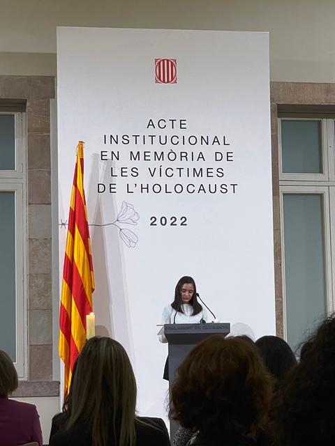 L’alumna Vanesa Roca va representar ahir a l’Institut Martí l’Humà a l’Acte Institucional en Memòria de les Víctimes de l’Holocaust que es va fer al Parlament de Catalunya. Sis centres de tot Catalunya van treballar durant el primer trimestre les víctimes de l’Holocaust. Cadascun d’ells es va centrar en un dels col·lectius que van ser objectiu dels nazis durant l’Holocaust. L’alumnat de 4t A va treballar sobre les persones perseguides per motius polítics i la Vanesa Roca va ser la representant de la classe que va llegir les conclusions del treball fet a l’aula.