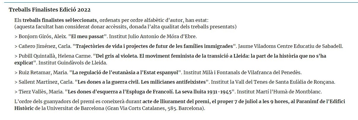 L’alumna del nostre centre Maria Tierz Vallès és finalista als premis UB-Santander amb el seu treball de recerca: “Les dones d’esquerra a l’Espluga de Francolí. La seva lluita 1931-1945”
