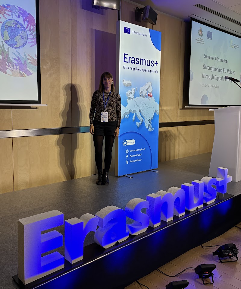 La nostra coordinadora Erasmus+, Almudena Herrera, ha estat aquests dies a Riga (Letònia) participant en una formació TCA Erasmus+ centrada en com reforçar els valors de la Unió Europea a través de la participació digital. Amb representants de tots els països de la UE, ha estat una gran oportunitat per crear nous contactes, establir futures col·laboracions i mobilitats, i donar a conèixer l’Institut Martí l’Humà arreu d’Europa. #ErasmusPlus #sepie