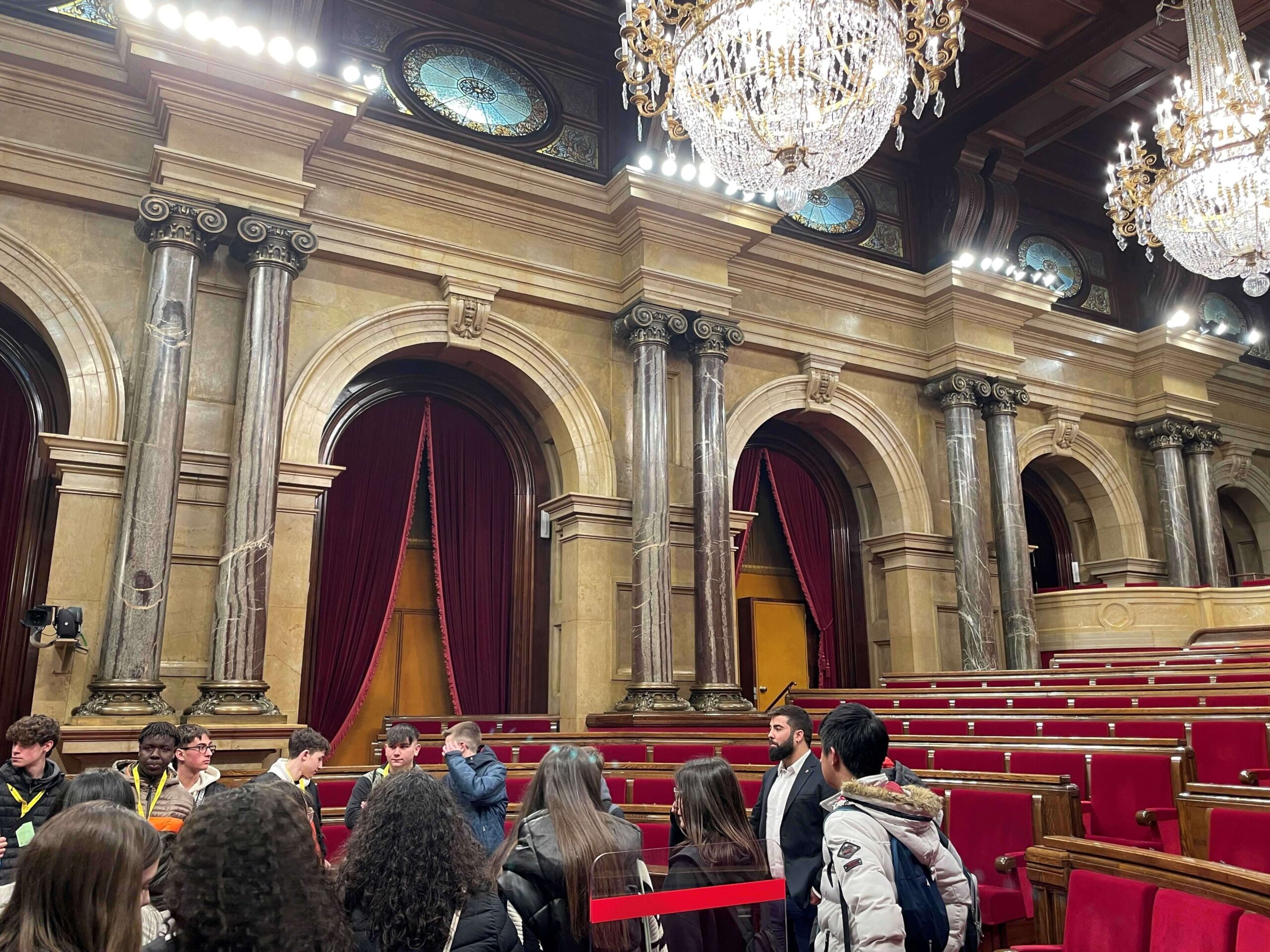 Dijous passat, l’alumnat de tercer va fer un taller al Parlament de Catalunya, aquest era el punt final del que s’havia treballat a l’aula, el funcionament del Parlament, història de l’edifici i organització dels grups parlamentaris. Ens va rebre el Diputat de Montblanc Oriol Pallissó, el qual ens va acompanyar a l’hemicicle i ens va respondre dubtes.