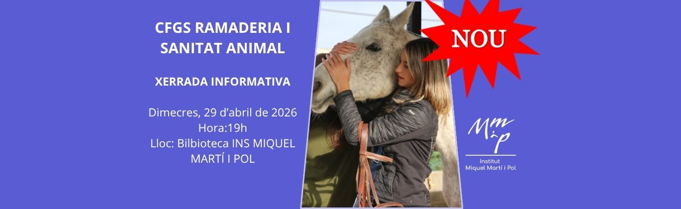 El proper curs, l’INS Miquel Martí i Pol ampliarà la seva oferta de Formació Professional amb la incorporació del nou Cicle Formatiu de Grau Superior de Ramaderia i Assistència en Sanitat Animal.Amb aquesta incorporació, l’institut consolida la seva aposta per una oferta educativa vinculada al sector agrari, un àmbit estratègic per al desenvolupament econòmic, social i sostenible del nostre territori.