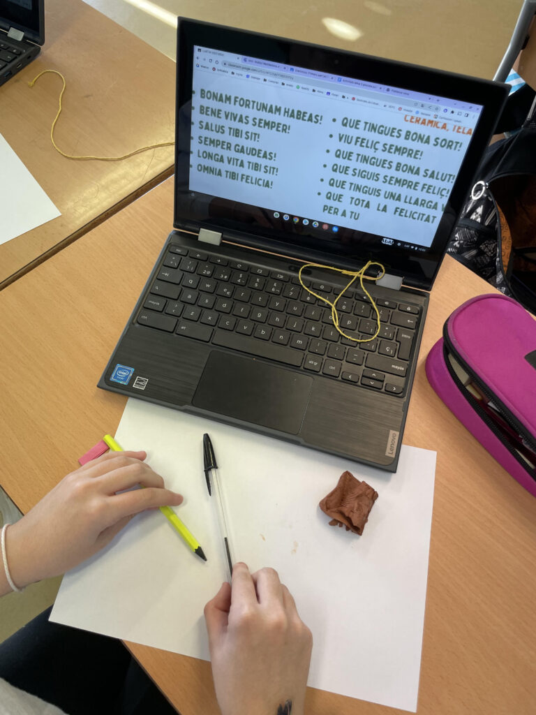 L’alumnat ha pogut comparar les dues tradicions, les Saturnalia i el Nadal, per veure d’on provenen els nostres costums. Després han escrit unes postals en llatí felicitant el Nadal i han fet una “bulla” d’agilla, un amulet que se’ls posava als nens petits. A l’interior han escrit un desig per al 2023.