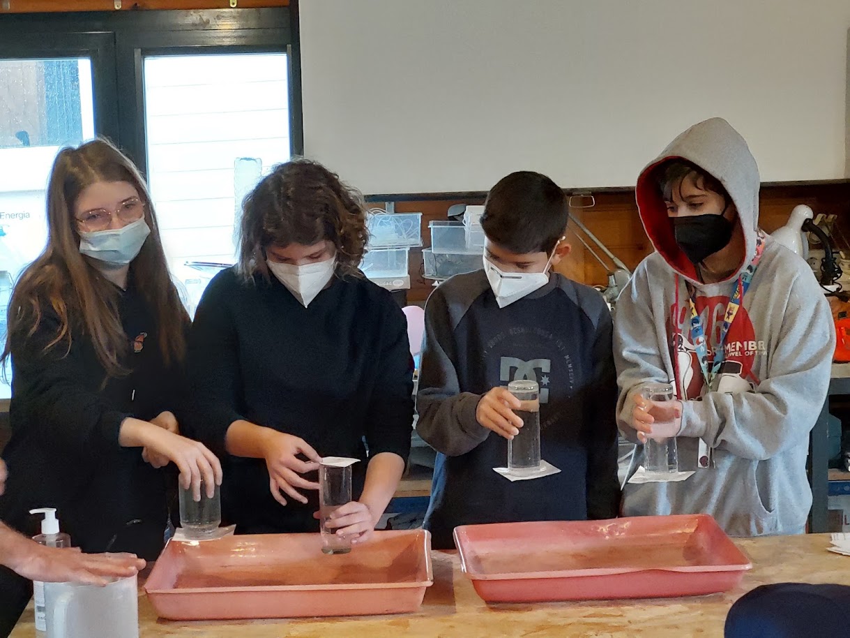 Al llarg del matí vam fer dos tallers: un per aprendre com s’utilitzen i què mesuren els aparells meteorològics i l’altre per fer experiments sobre les diverses característiques de l’atmosfera: hem investigat perquè puja el nivell del mar quan hi ha un huracà, com és que les ventoses s’enganxen, què és la pressió atmosfèrica i perquè no la notem, i hem creat un núvol dins del laboratori!