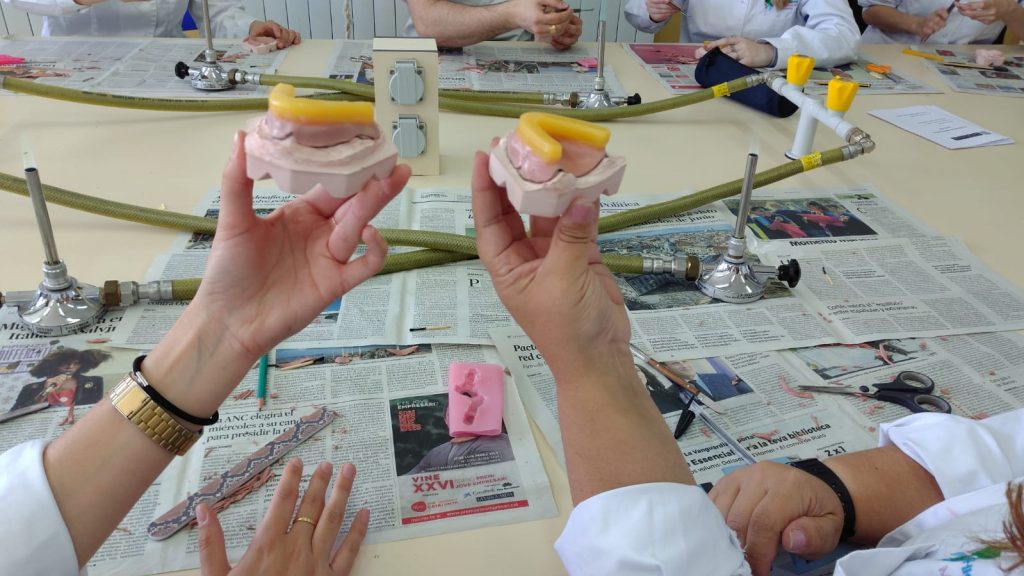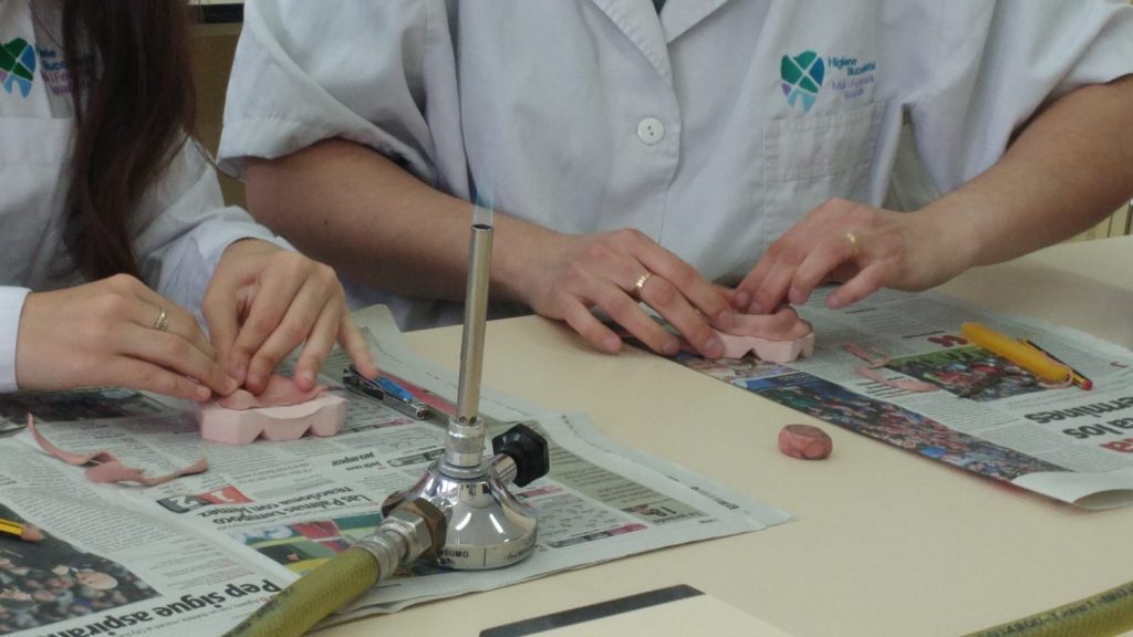 Els alumnes d’Higiene Bucodental realitzen un treball protèsic. admin29/05/19 Per tancar el mòdul de Pròtesis i Ortodoncia al CFGS d’Higiene bucodental, les alumnes varen realitzar un treball protèsic, un rodet d’articulació, a càrrec de la professora Gemma Giner.