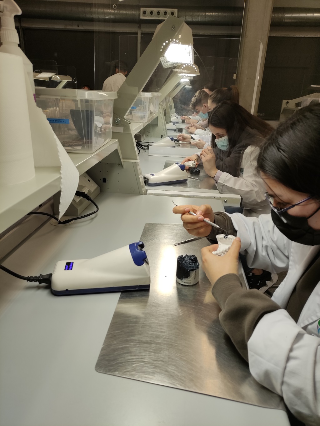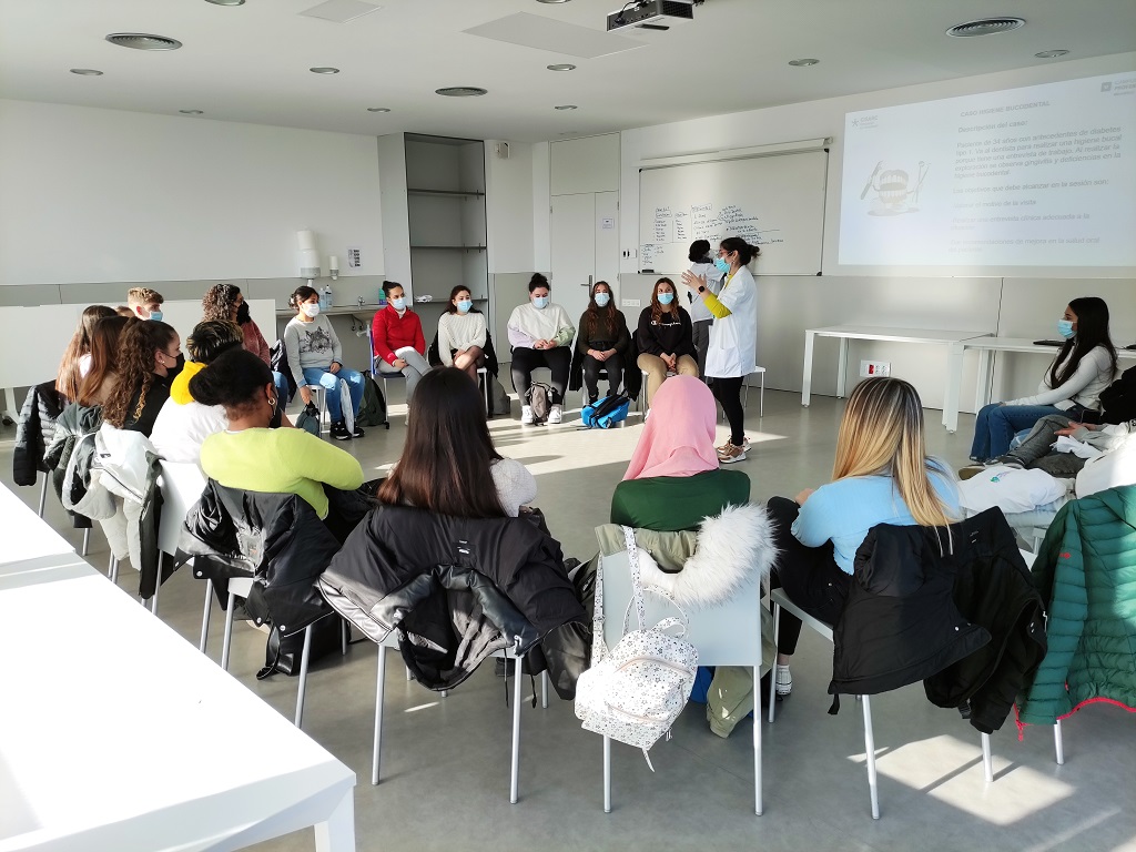 Els alumnes de 2n d’Higiene Bucodental el dimarts 22 de març vam fer una sortida a la Fundació Universitària de Manresa. Ens van preparar dos tallers relacionats amb els estudis que es poden cursar a aquest centre universitari. El primer taller va ser una simulació d’un cas pràctic, al Centre d’Innovació en Simulació (CISARC), relacionat amb la nostra tasca d’Higienista a una consulta odontològica, vam poder conèixer aquesta metodologia tot participant de manera activa en la resolució d’un cas. I el segon taller consistia en el modelatge d’una dent de cera a les aules del cicle de Pròtesis dental i en el disseny d’una pròtesis amb CAD, amb l’ajuda dels professors i dos alumnes d’aquest cicle. Aquesta sortida ha estat molt interessant per conèixer altres maneres de treballar en l’àmbit sanitari.
