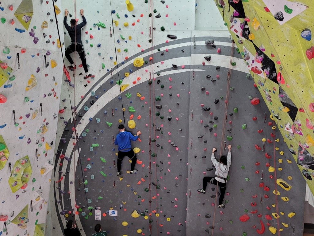 Ingravita és un rocòdrom i escola d’escalada situada a la ciutat d’Igualada. Vam formar tres equips per fer una lligueta entre nosaltres. Mentre que dos grups feien escalada als rocòdroms, un altre grup estava escalant a molta alçada agafats entre cordes i arnes. Així els tres grups vam anar rotant entre les activitats proposades per l’empresa.