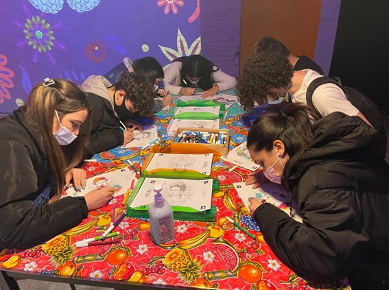 Primer es va visitar l’exposició «Frida Kahlo, la vida d’un mite», a l’Ideal Centre d’Arts Digitals. Aquesta mostra és interactiva, i immersiva, amb activitats participatives i amb l’ús de les noves tecnologies. Hi havia realitat virtual en 3D, escenaris immersions, i interacció amb programes d’inteŀligència artificial.