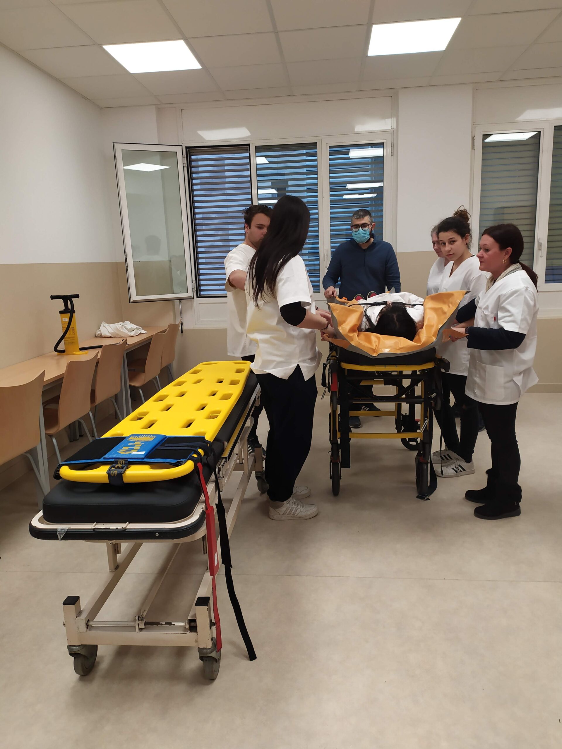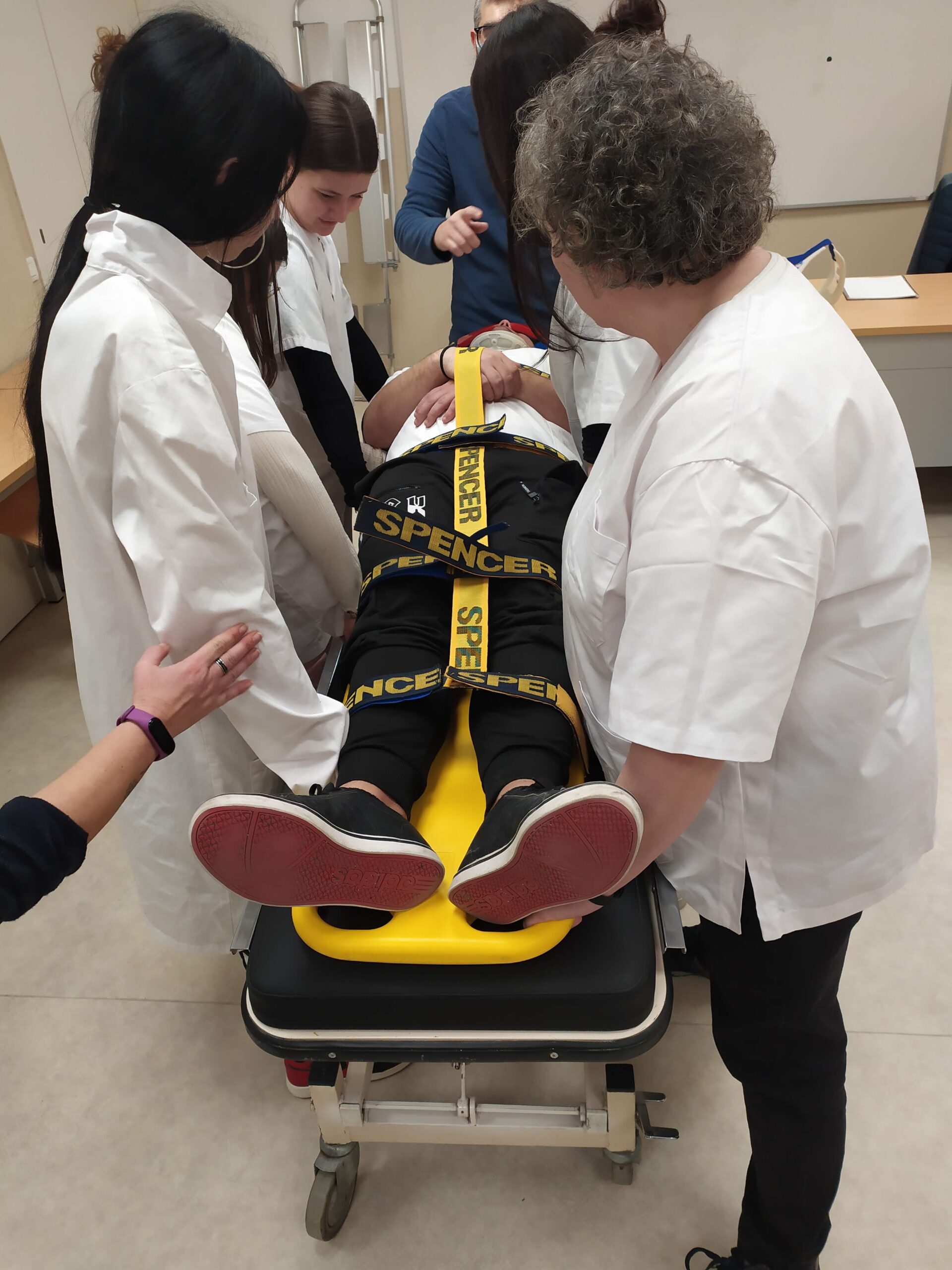 Els alumnes que cursen el CFGM de Cures Auxiliars d’Infermeria, en els seus respectius torns de matí i tarda, van assistir a dos tallers pràctics al centre de simulació 4Dhealth. Un dels tallers, impartit per l’infermer de l’Hospital de Bellvitge, Joan Esteban, donava una àmplia base sobre la mobilització de persones politraumatitzades a nivell d’assistència urgent i emergent . L’alumnat va poder practicar diverses maniobres.
