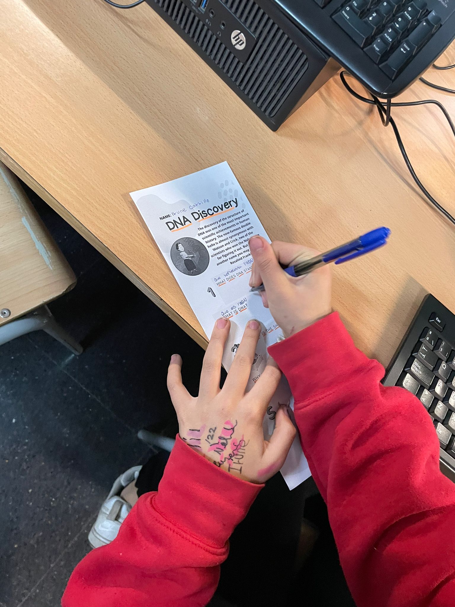 International Day of Women and Girls in Science admin22/02/23 A 2n d’ESO, des de l’assignatura de llengua anglesa i emmarcat dins la temàtica del “International Day of Women and Girls in Science”, han estat veient uns vídeos de Marie Curie i Rosalind Franklin i han fet una petita recerca de què és l’ADN.