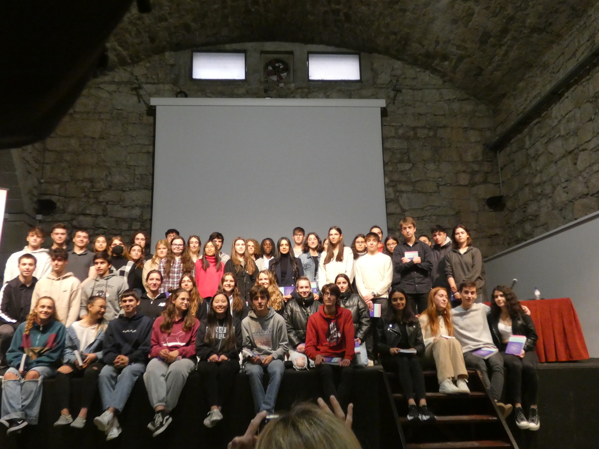 En aquest acte, el filòleg i corrector Jordi Badia va donar una conferència titulada: El català perilla? Què hi podem fer? Tot seguit es va fer lliurament d’un exemplar del llibre als alumnes que havien elaborat els resums extensos. El nostre centre hi va estar representat amb la Hoda Aghzaf, la Noa Hervàs i el Nil Navarro.