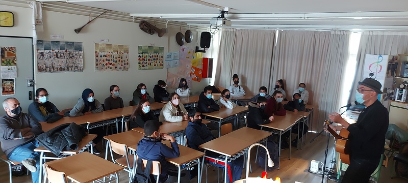 Actuació del músic “Lalo López” de la “Fundación Tony Manero” admin06/02/22 L’alumnat de 3r d’eso ha pogut gaudir del músic Lalo López, ha tocat i cantat i ens ha explicat com es forma un músic, com funciona el món de la música, dels concerts, dels mànagers.