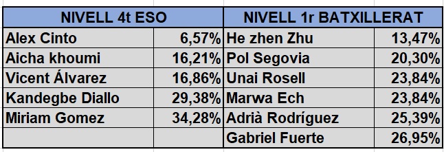 EXCEL·LENTS RESULTATS EN LES PROVES CANGURS admin26/05/23 Felicitem als següents alumnes per a la seva bona puntuació en les proves Cangur de Matemàtiques, especialment per la seva posició a Alex Cinto i He Zhen Zhu.