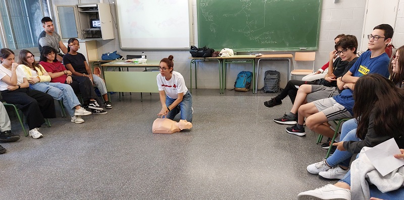 El dimarts, 10 d’octubre, l’alumnat de 4t ESO va participar en un taller de primers auxilis a càrrec de la Creu Roja. Aquesta activitat va constar de dues parts: una teòrica i una pràctica on van veure la maniobra d’Heimlich, la RCP (Reanimació cardiopulmonar) i la PLS (Posició Lateral de Seguretat). Va ser un taller molt interessant.