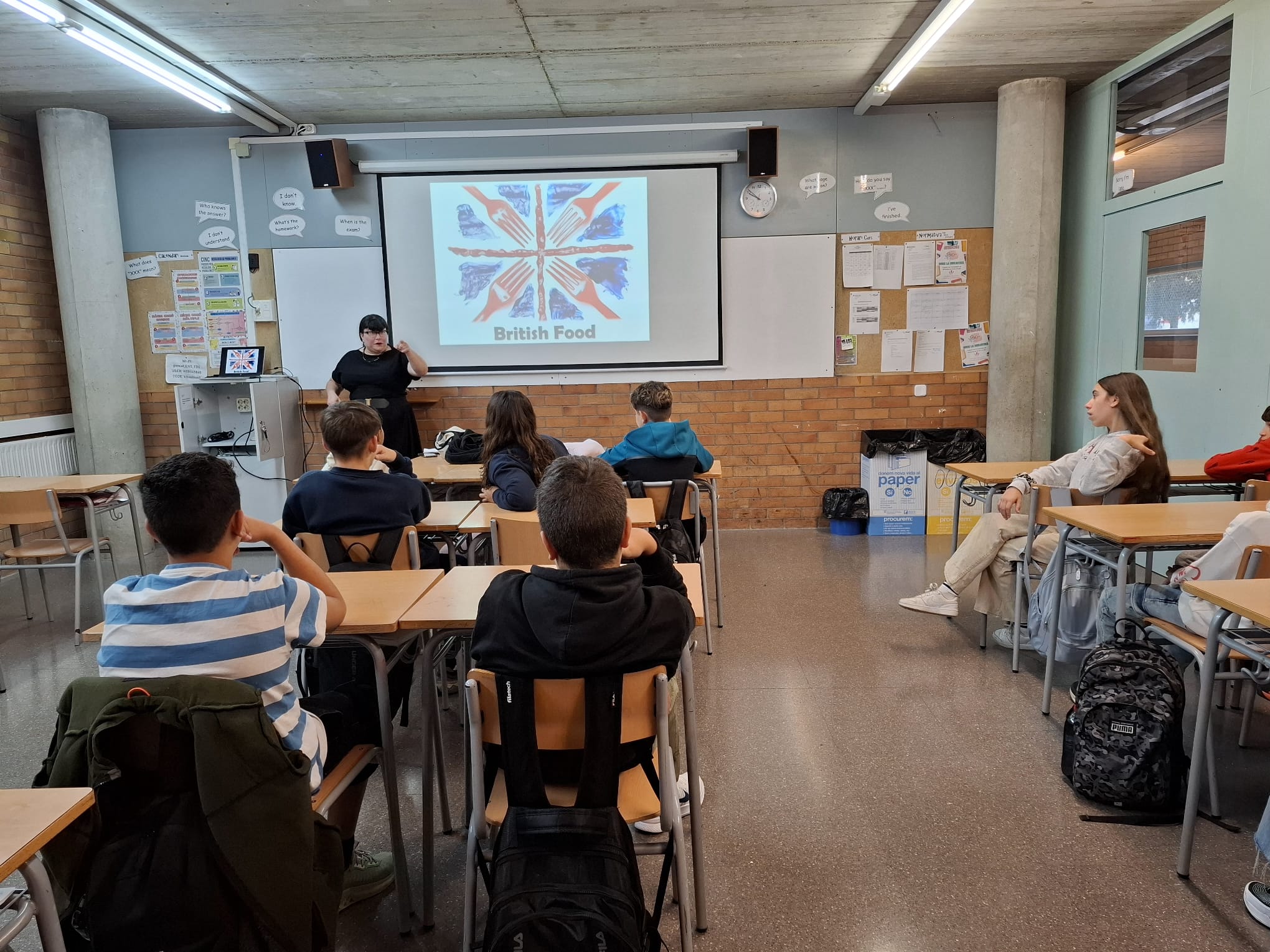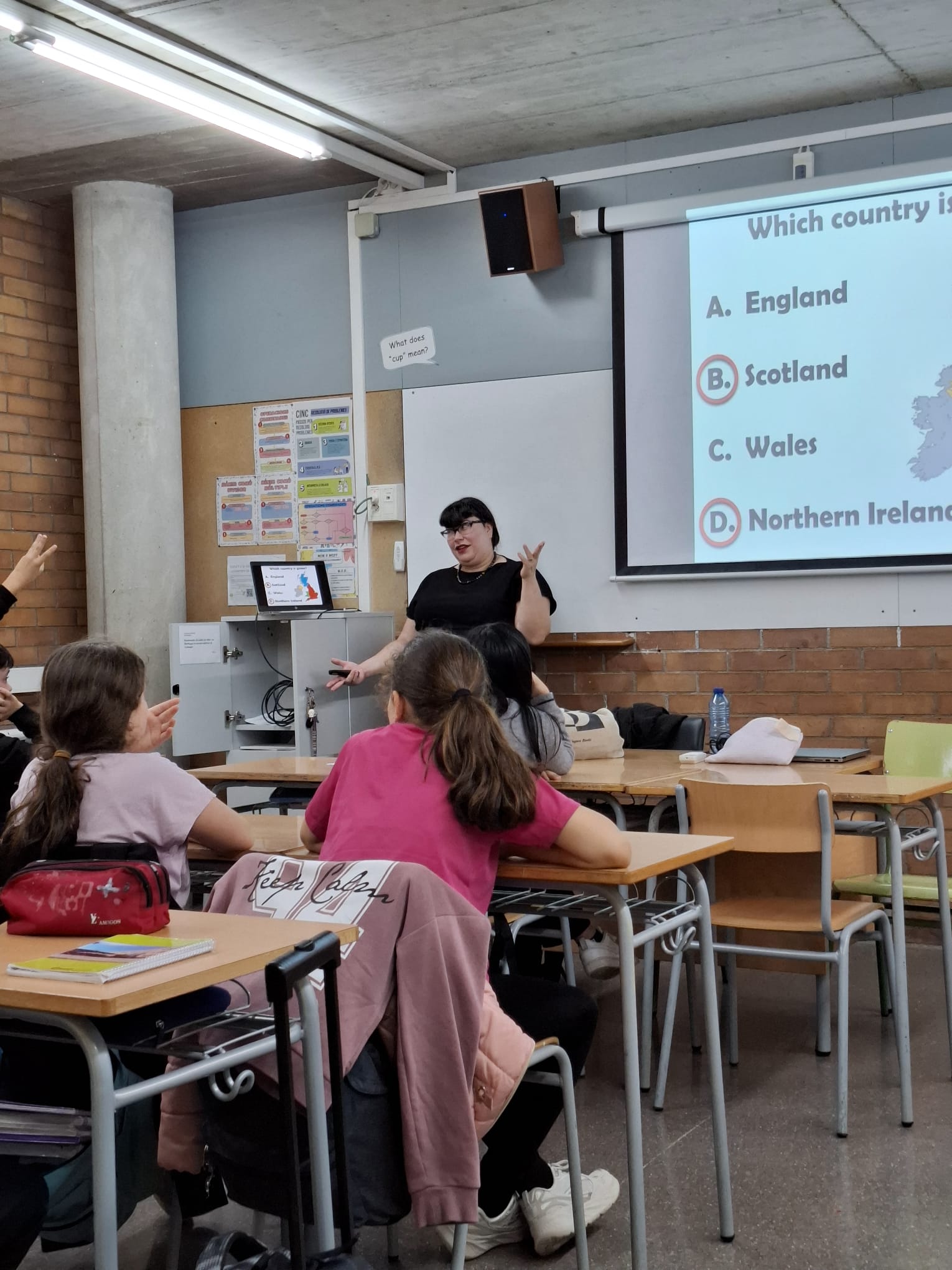 Aquest dijous, 13 de novembre, l’alumnat dels 4 grups de 1r d’ESO han gaudit d’una sessió en anglès sobre diferents aspectes culturals del Regne Unit a càrrec de Cristina Vargas, teacher trainer (formador de docents) de l’editorial Burlington. En aquesta xerrada, els estudiants han aprés a diferenciar les nacions que configuren el Regne Unit, les seves banderes i símbols nacionals, i també a identificar la Família Real, les llengües (anglès, gal·lès, còrnic, irlandès i gaèlic escocès), la música i altres aspectes de la cultura britànica, d’una forma divertida i didàctica a la vegada.