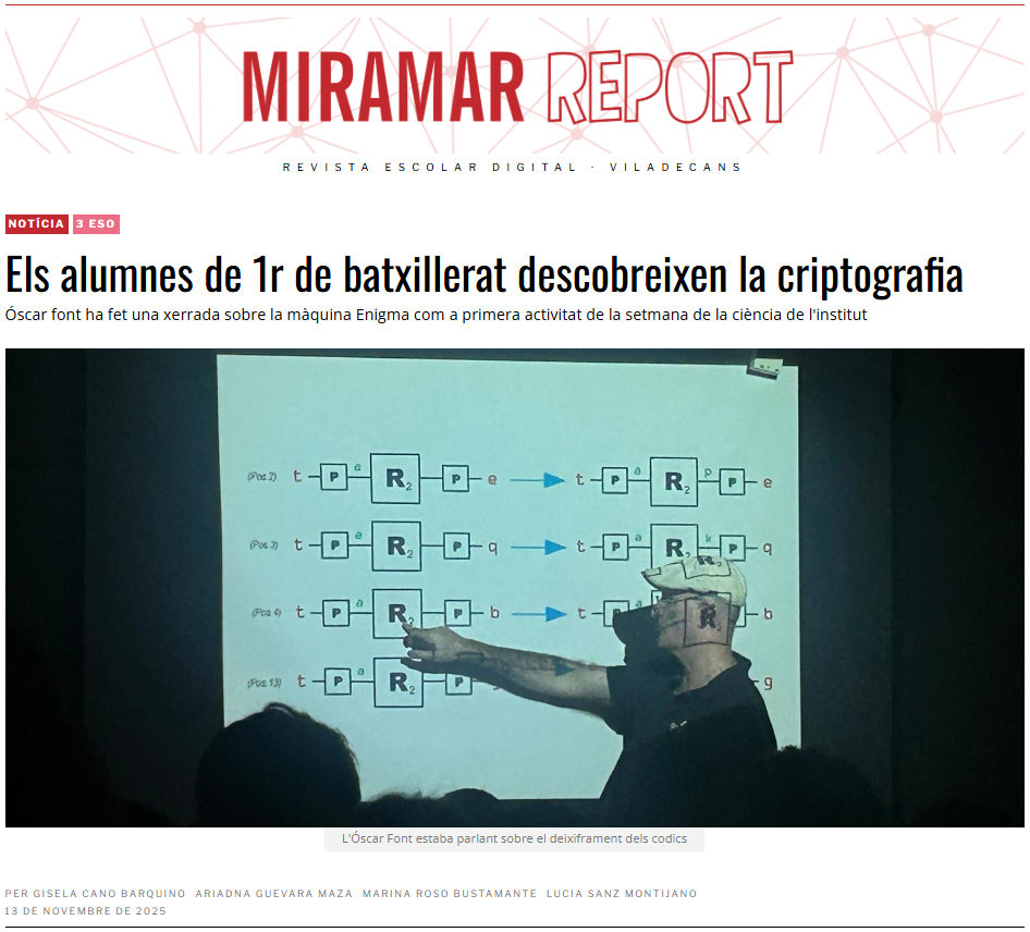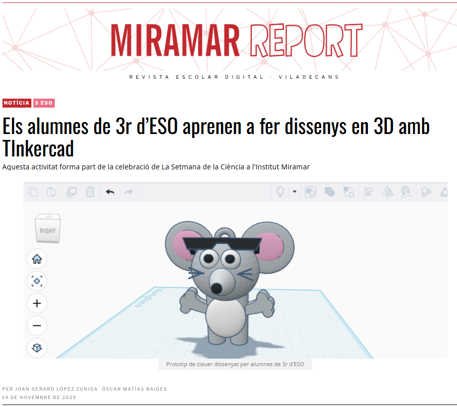 Enllaç notícia activitat 3r ESO: Disseny d’un clauer amb Tinkercad Enllaç notícia activitat 4t ESO i 1r BATX: Xerrada Criptografia
