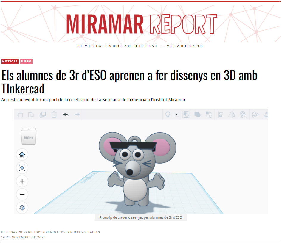 Enllaç notícia activitat 3r ESO: Disseny d’un clauer amb Tinkercad Enllaç notícia activitat 4t ESO i 1r BATX: Xerrada Criptografia