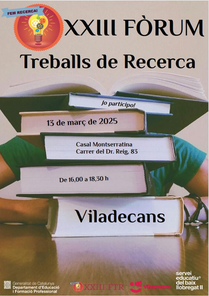 Les alumnes de segon de batxillerat Laia Morales i Sandra Màrquez participaran, el proper 13 de març, en el XXIII Fòrum de Treballs de Recerca de Viladecans. Una jornada marcada per l’excel·lència on cada institut de la ciutat presenta a dos dels seus millors treballs de recerca.