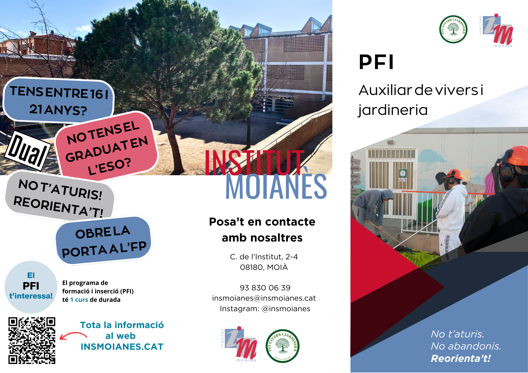 L’Institut Moianès ofereix un PFI (Pla de formació i inserció) amb el perfil professional d’auxiliar de vivers i jardineria.