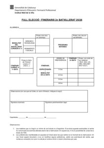 FULL ELECCIÓ ITINERARIS 2n BATXILLERAT 25-26
