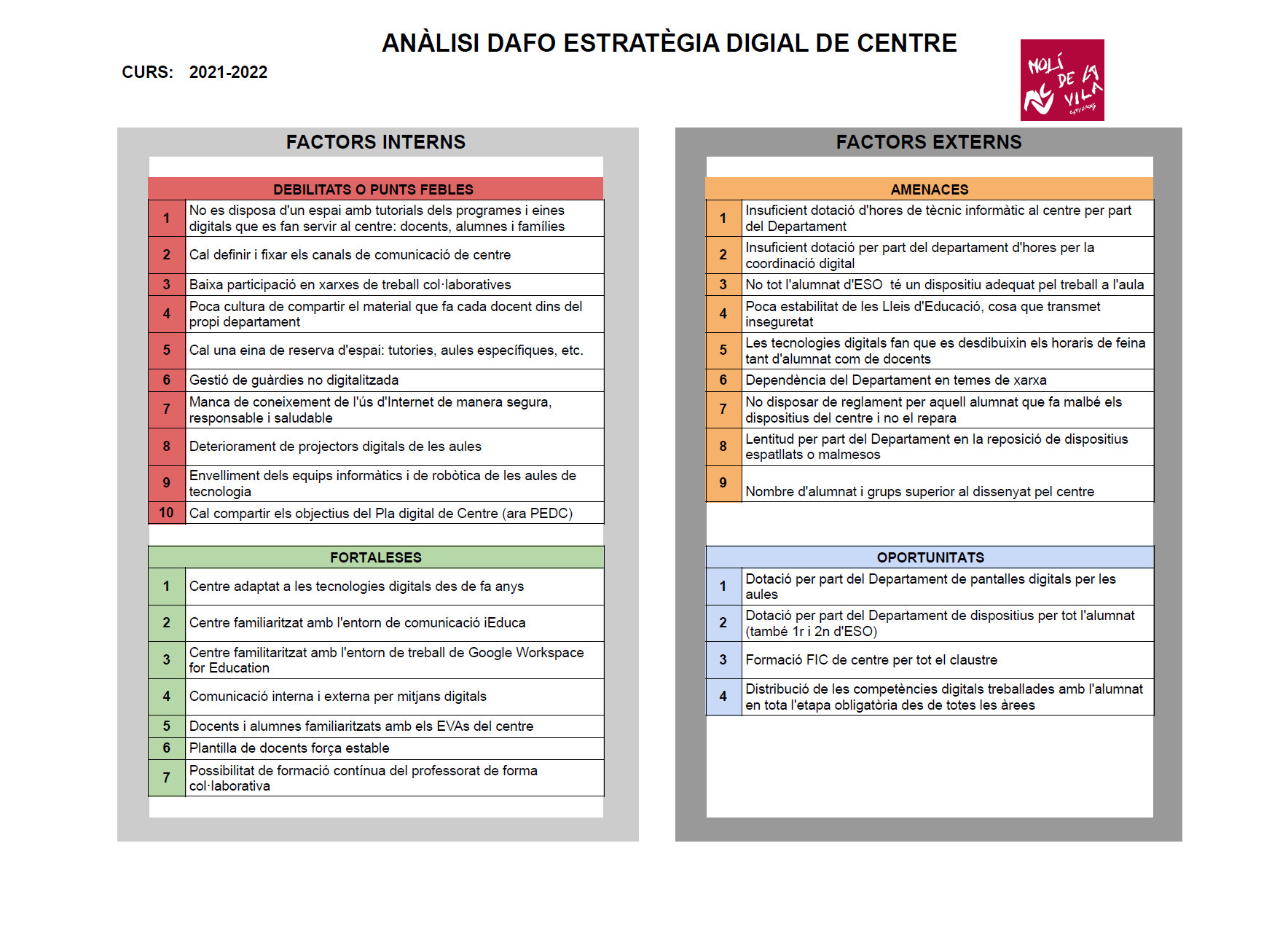 Diagnosi Eines utilitzades en la diagnosi: Formularis de la “Selfie” per alumnat, docents i equip directiu Formularis d”‘Evaluación previa Marco Transformacional ieducando”