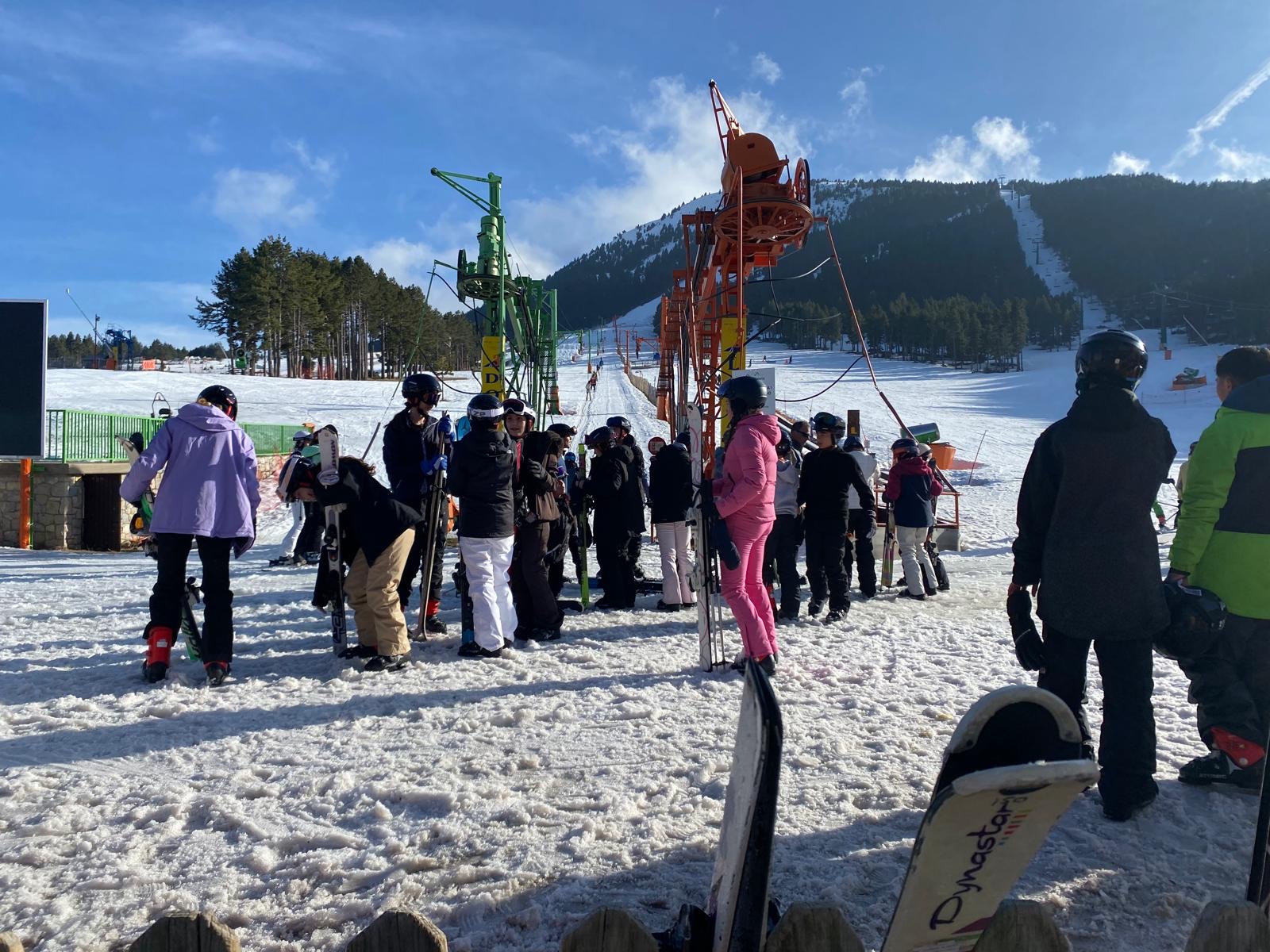 Durant l’estada, estan practicant esquí alpí, gaudint de moments de lleure amb trineus i participant en jocs de nit, compartint temps i experiències amb els companys i companyes fora de l’aula.