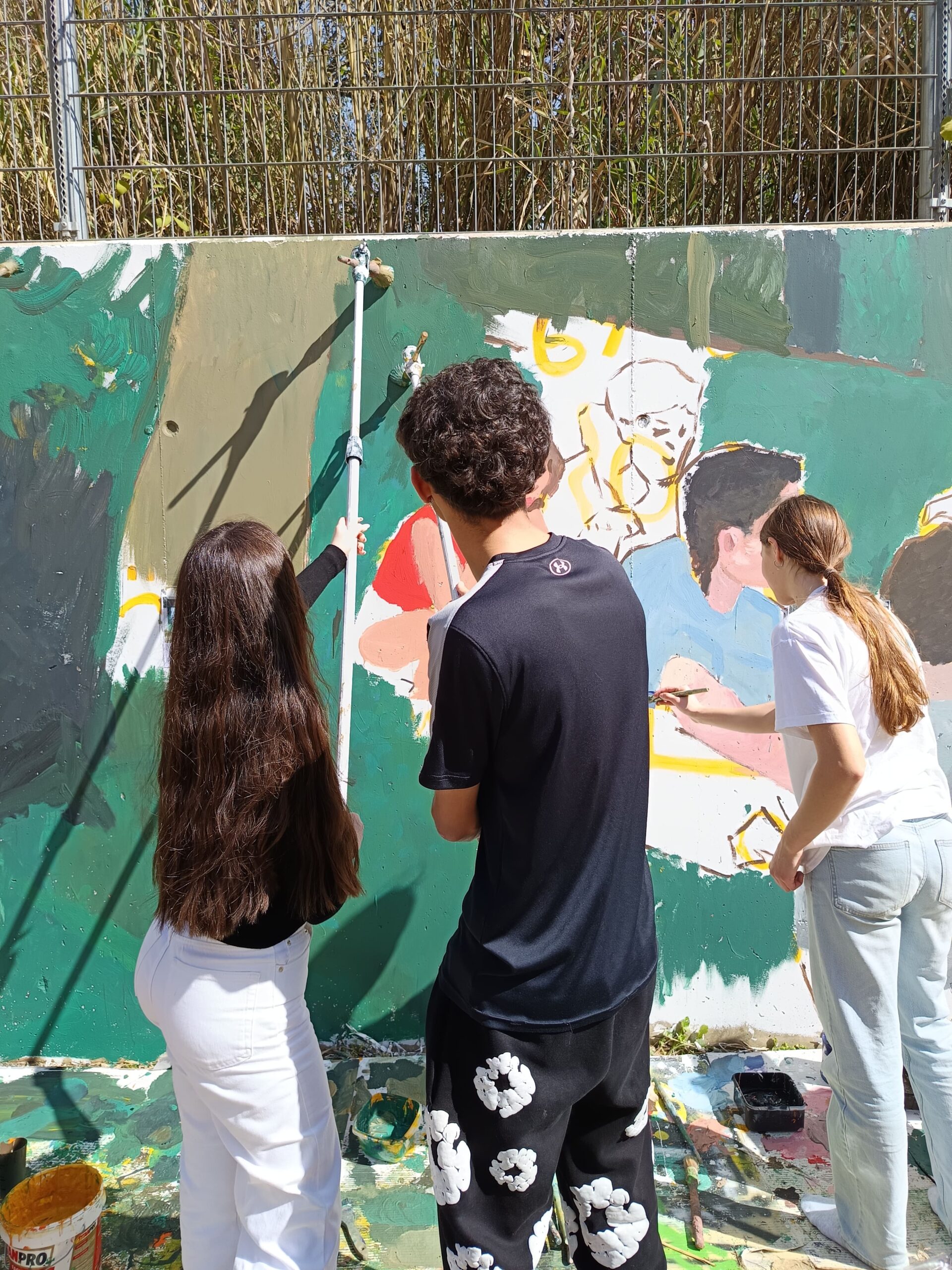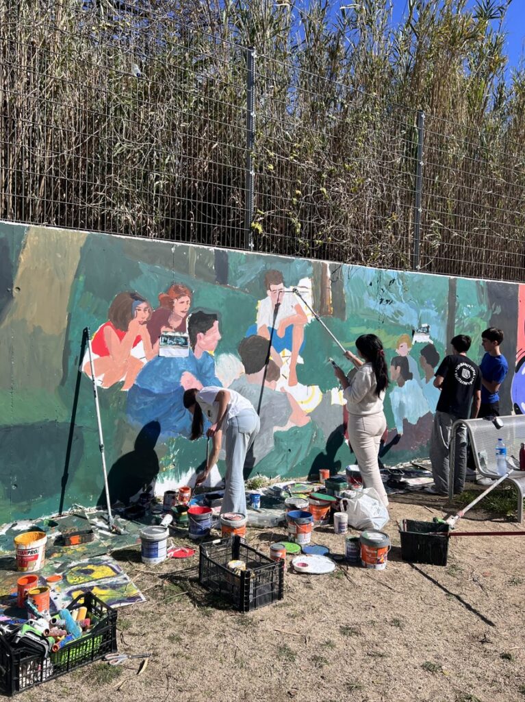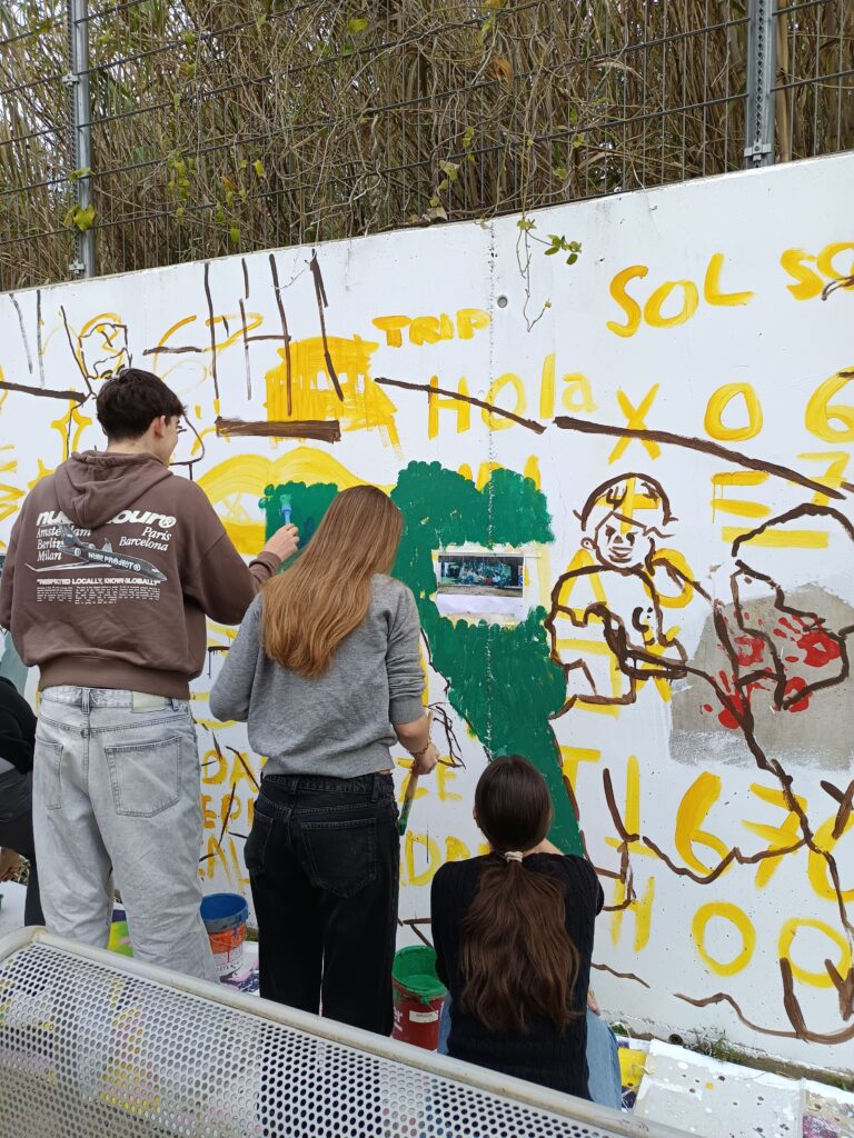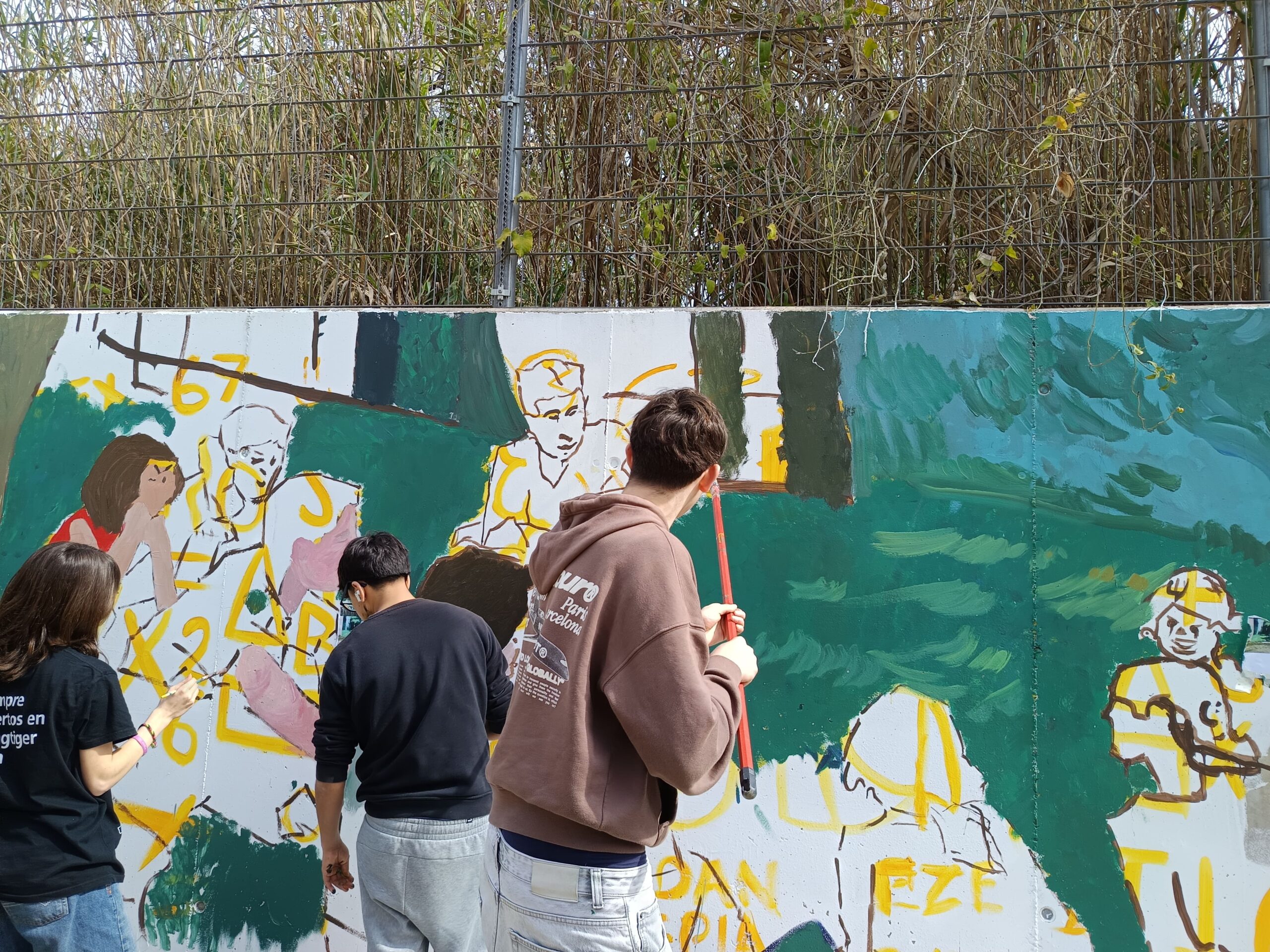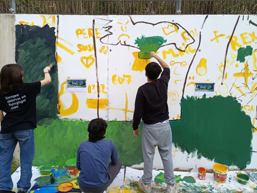 Primer, hem fet unes sessions amb tots els alumnes aportant idees. Tot seguit, hem estat tot un dia amb els alumnes de l’optativa d’Expressió Artística realitzant el mural.