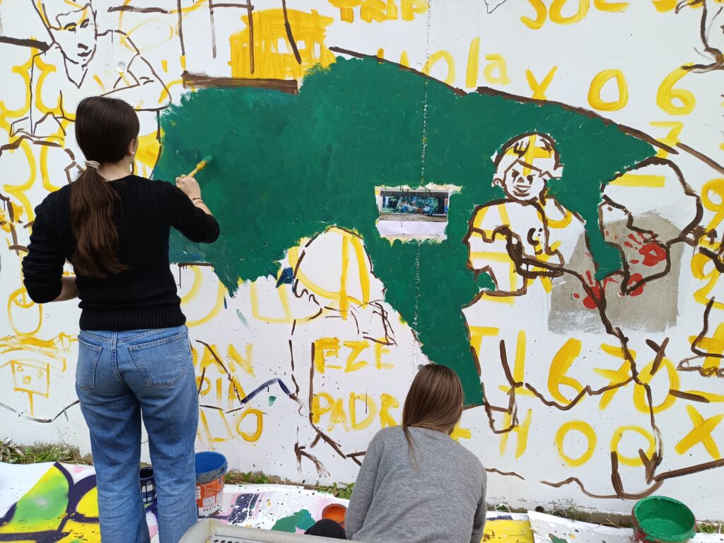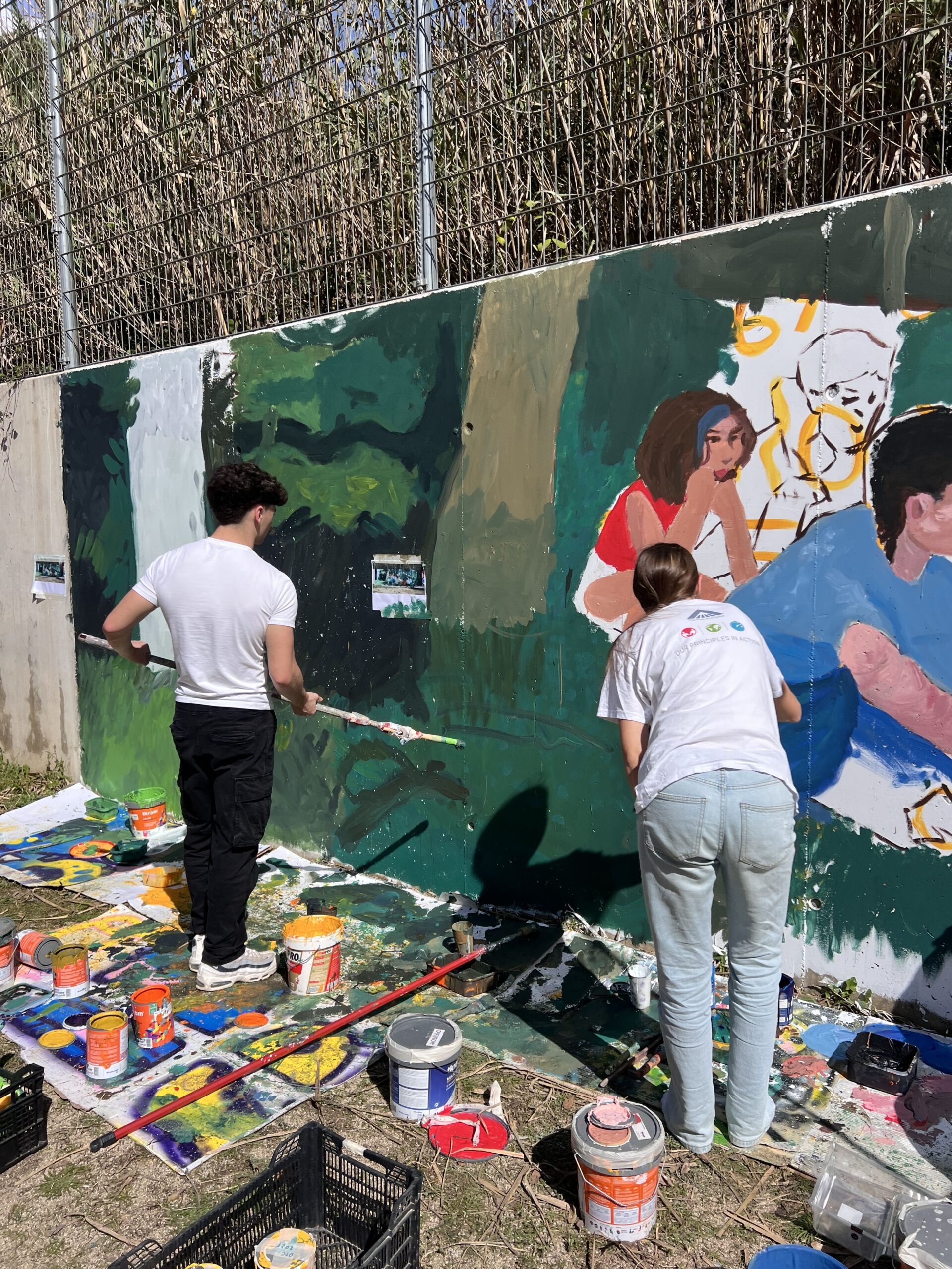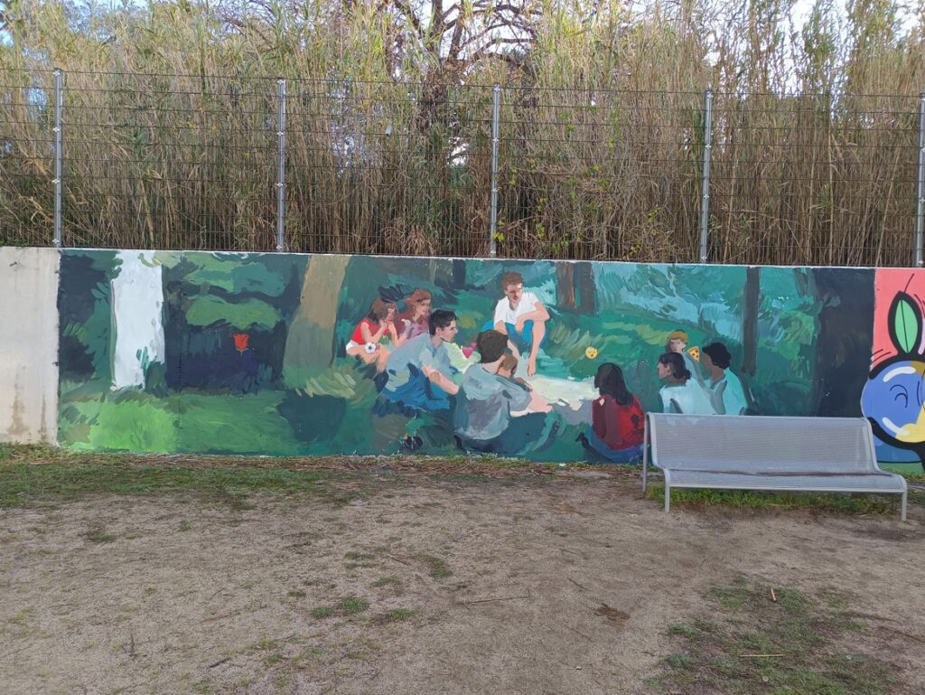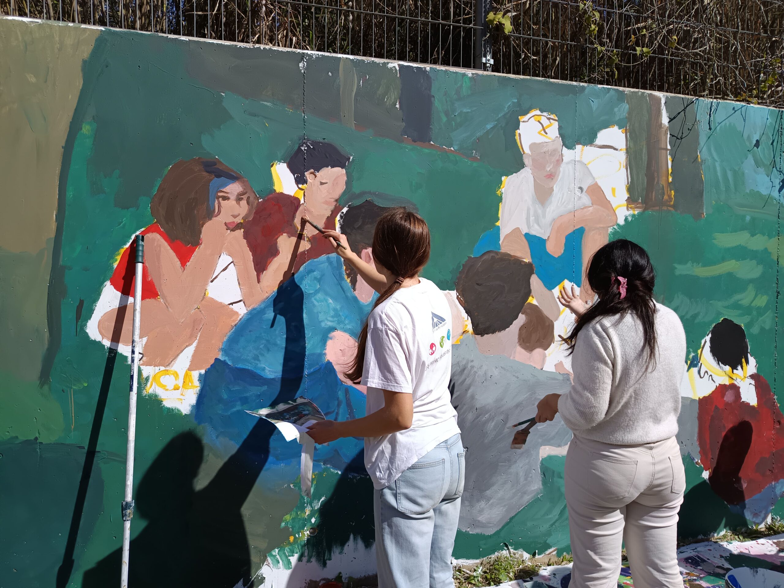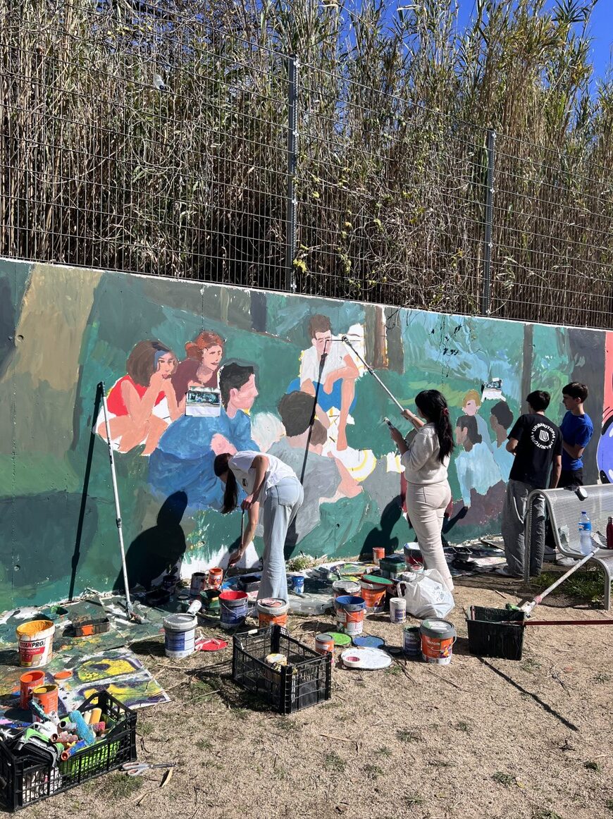 Primer, hem fet unes sessions amb tots els alumnes aportant idees. Tot seguit, hem estat tot un dia amb els alumnes de l’optativa d’Expressió Artística realitzant el mural.