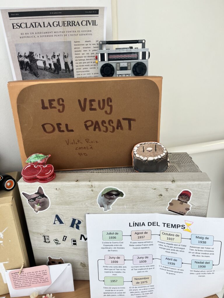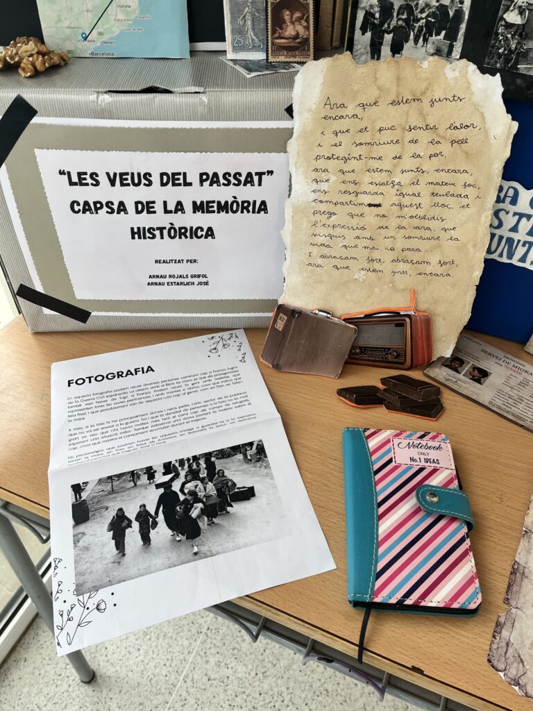 A partir de la lectura, els alumnes han elaborat un projecte titulat “Les veus del passat”, que consistia a crear una capsa de memòria històrica inspirada en el llibre. Aquesta capsa recull diferents elements que ajuden a comprendre el context de la Guerra Civil, l’exili i les experiències dels personatges.