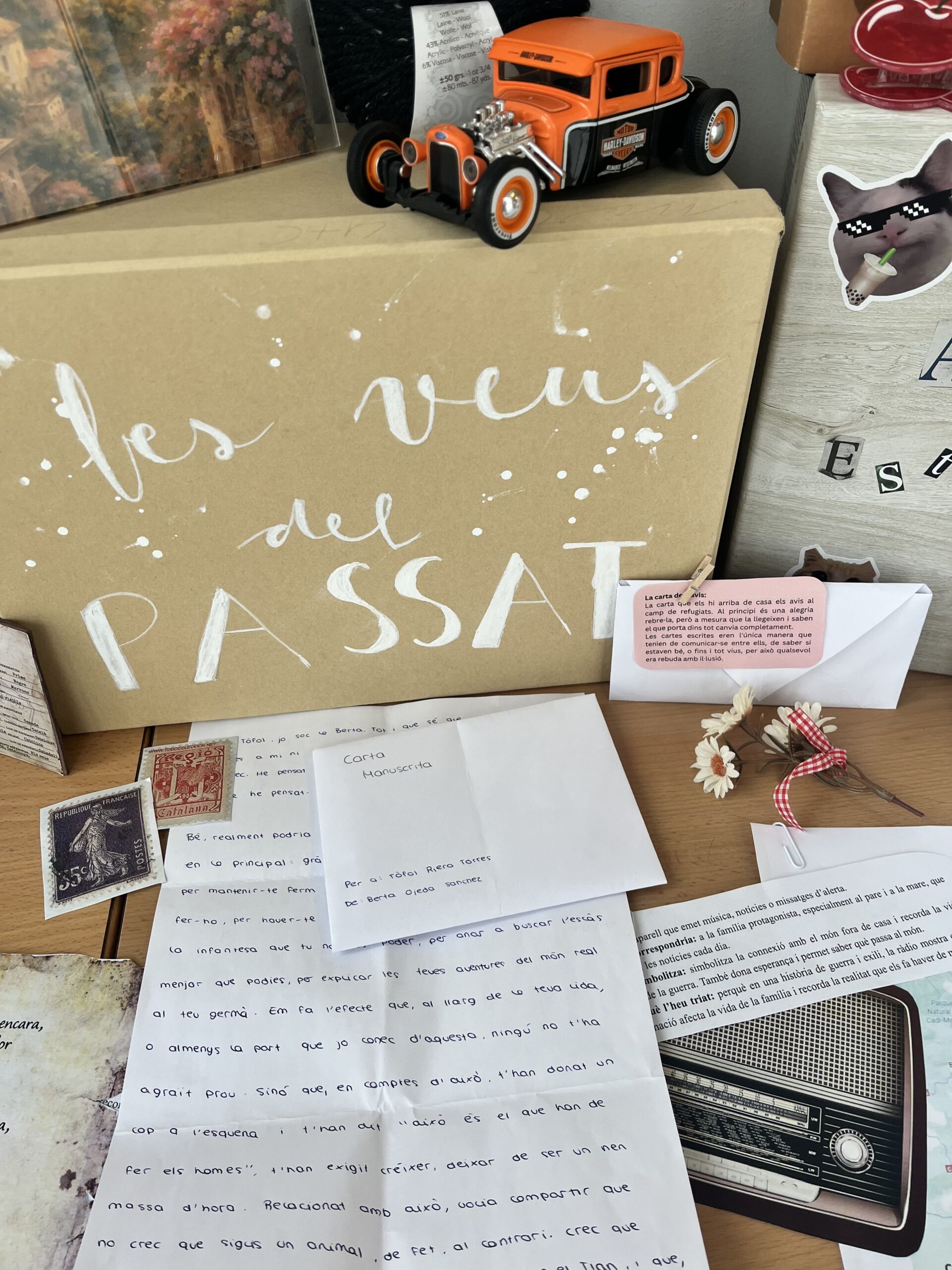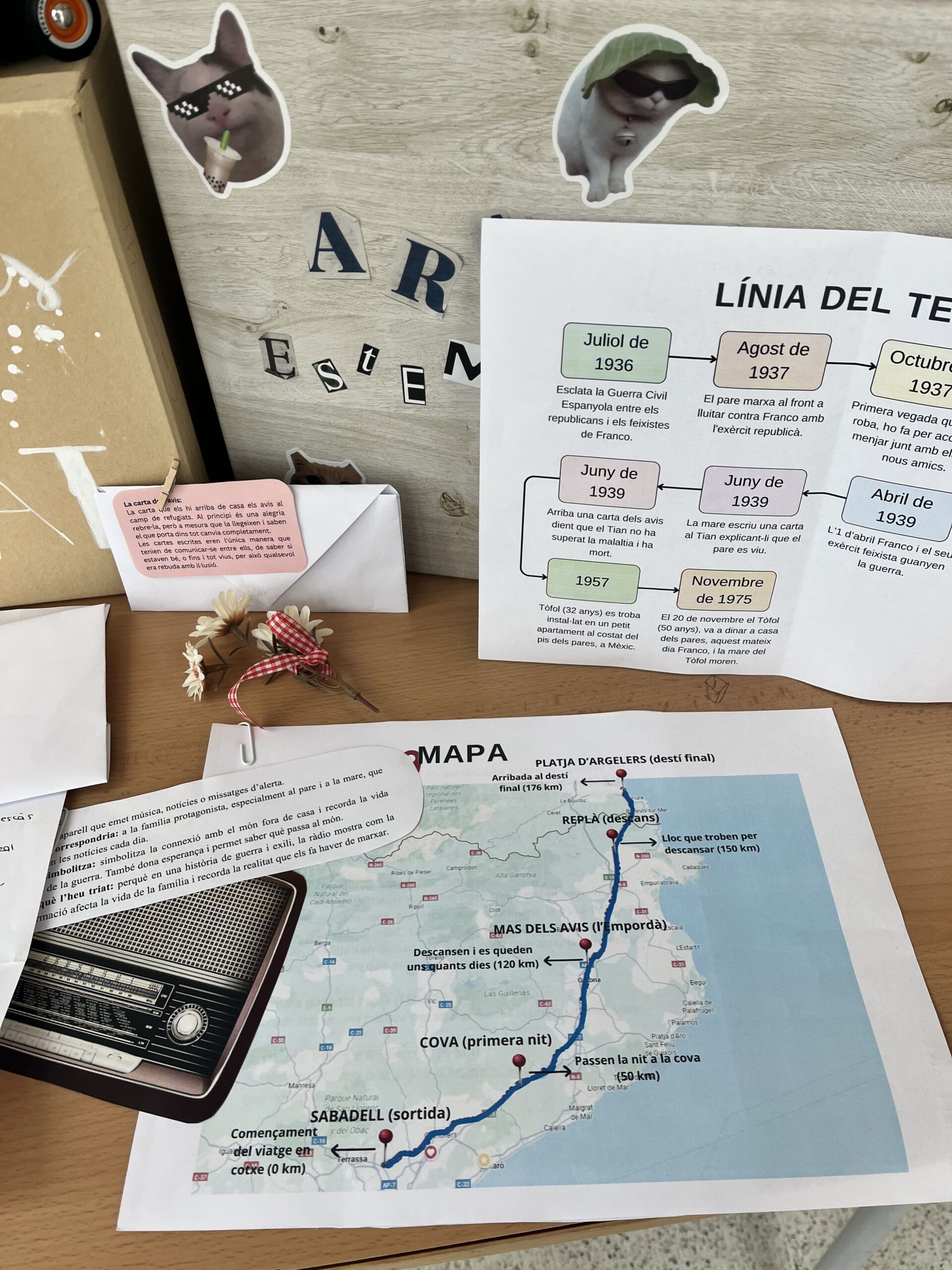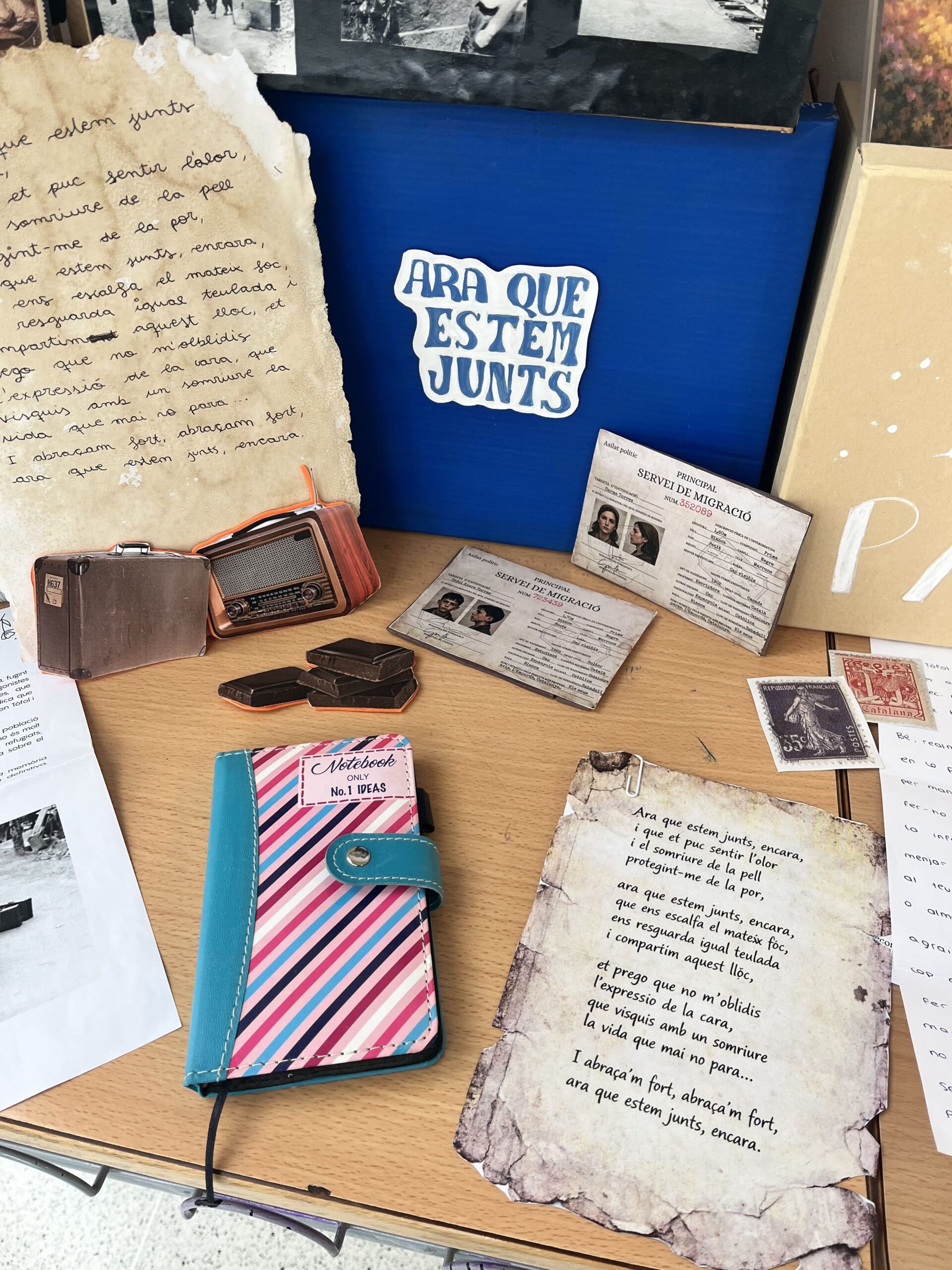 A partir de la lectura, els alumnes han elaborat un projecte titulat “Les veus del passat”, que consistia a crear una capsa de memòria històrica inspirada en el llibre. Aquesta capsa recull diferents elements que ajuden a comprendre el context de la Guerra Civil, l’exili i les experiències dels personatges.