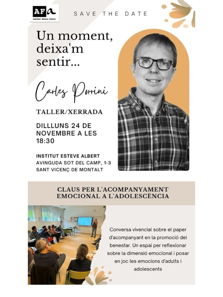Taller / Xerrada: Acompanyament emocional durant l’adolescència – Dilluns 24 novembre a les 18:30