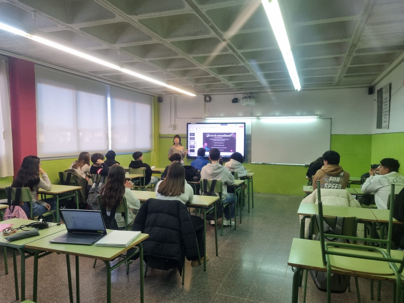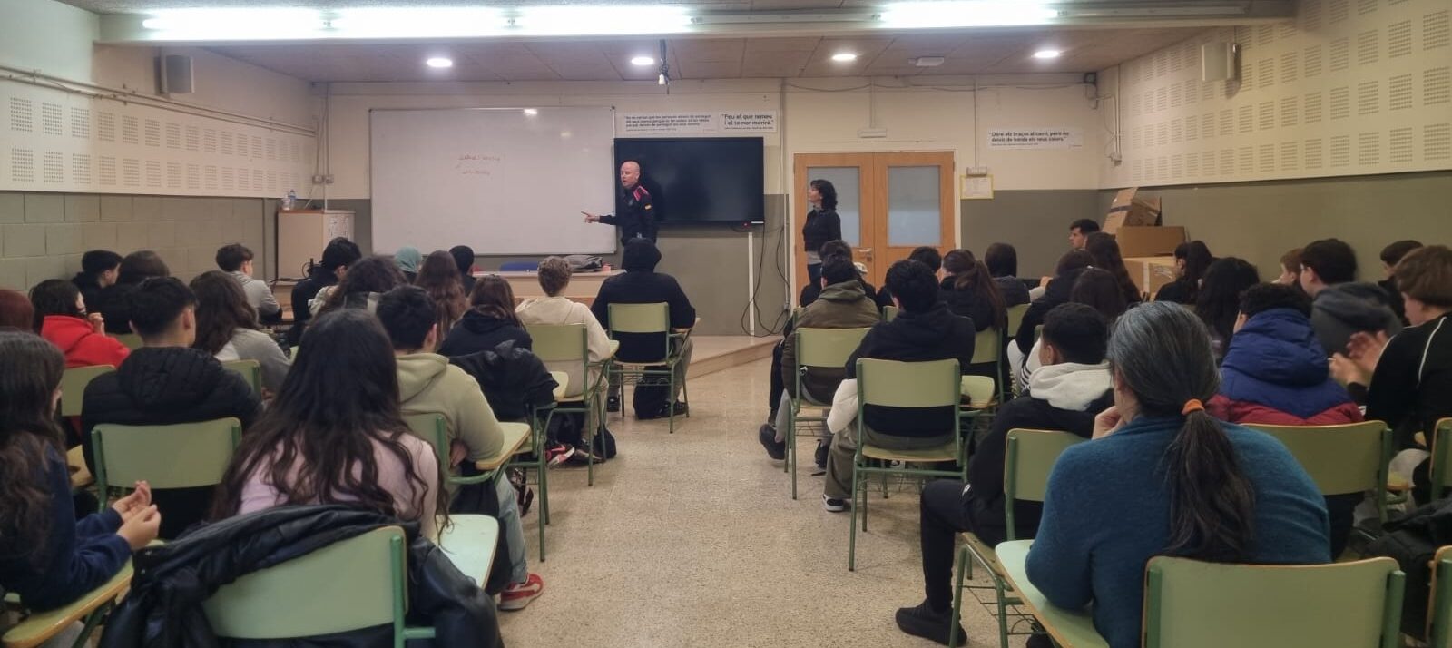 L’alumnat de quart d’ESO ha assistit a diverses xerrades que han tingut lloc aquesta setmana al centre. Aquest dimecres, 15 de gener, la temàtica era “Drogues i lleis”. Aquesta va anar a càrrec del Rubén, Mosso d’Esquadra, i la Susana, infermera del Programa Salut i Escola.