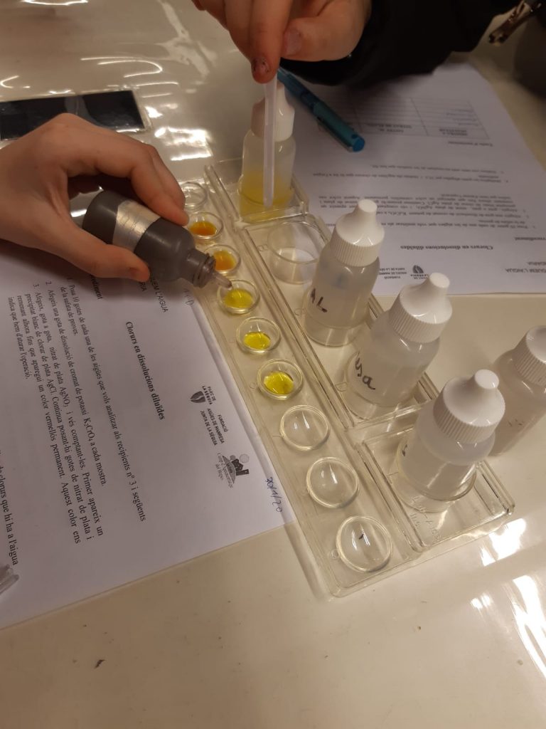 Al Centre de l’Aigua ens van explicar com aquesta dissol els minerals per allà on passa i vam poder comprovar amb un experiment que les aigües superficials que provenen de zones amb moltes sals tenen més clorurs. Vam analitzar aigua de l’aixeta del nostre institut i vam veure que és de molt bona qualitat respecte el contingut de clorurs, que és més baix que a altres zones de la Catalunya Central.