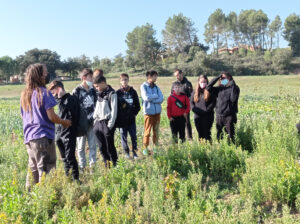 El passat 26 d’octubre els nostres alumnes de 2n A, que fan el Projecte Hort /Escola Verda, van fer una sortida a peu a Can Mercaderet, situat en un extrem del nostre municipi, a la carretera d’Igualada a Tous. Ens va rebre l’Adrià Solé, amb una petita xerrada sobre l’agricultura ecològica i de proximitat, la seva importància per a la salut i com redueix les emissions de gasos contaminants. Ens va portar a fer una passejada per l’hort, on els alumnes van reconèixer les hortalisses plantades i van collir estolons de maduixeres per a fer planter. Vàrem veure, de lluny, un grup de joves treballant en uns troncs de pi acabats de tallar, amb les que faran un cobert de fusta ecològica. Un cop fet el planter, ens va ensenyar la granja on ja tenen 2 vaques, per a produir el seu propi formatge i iogurt, així com el galliner mòbil, per a produir els seus propis ous. Finalment, ens va ensenyar a adobar les olives de la nostra collita, que portàvem a la motxilla i ja havíem tingut en aigua durant vuit dies.