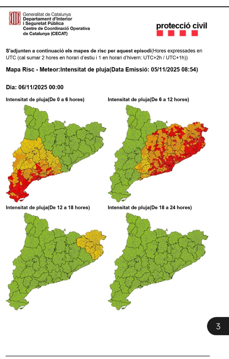 En cas de pluja intensa, recomanem preveure més temps per arribar-hi amb seguretat. Adjuntem el mapa de risc per aquest episodi, per tal que en disposeu de tota la informació.
