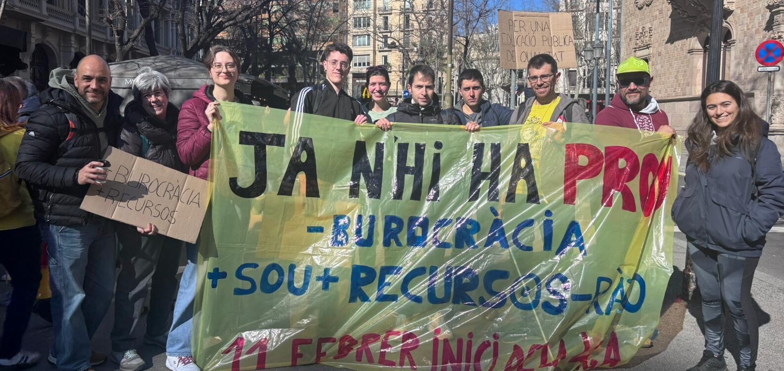 Diversos docents de l’institut que han fet vaga han assistit aquest dimecres 11 de febrer a la manifestació de Barcelona convocada pels sindicats. La marxa s’ha iniciat als jardinets de Gràcia a les 12.30 hores i ha acabat vora les tres de la tarda davant el Departament d’Educació.