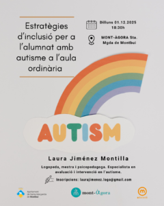 Vine a descobrir estratègies pràctiques d’inclusió per a l’alumnat amb autisme a l’aula ordinària, de la mà de Laura Jiménez Montilla, logopeda, mestra i psicopedagoga especialista en avaluació i intervenció en l’autisme.