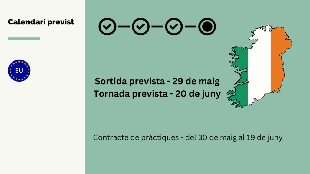 Estada Erasmus+ VET Curs 2023-2024Per Susanna Santamaria / 17/11/2023 / ERASMUS+ VET (CFGM) Calendari de la convocatòria i de l’estada a County Waterford que es troba al Sud Est d’Irlanda, a la regió de Munster.