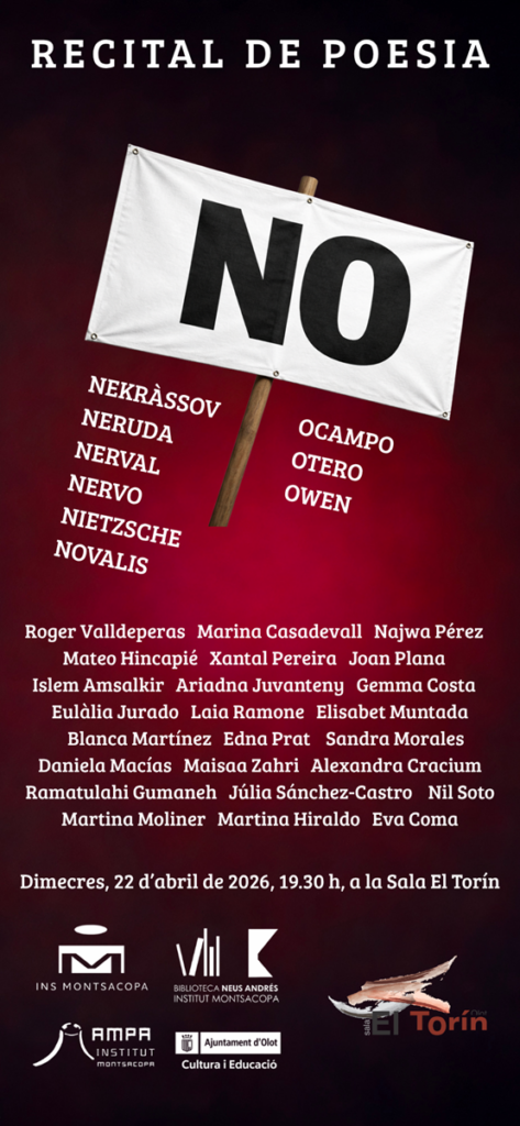 El passat 22 d’abril es va celebrar un recital de poesia en què van participar tant alumnes com exalumnes de l’Institut. És habitual organitzar aquest tipus d’actes en dates properes a Sant Jordi, una diada molt vinculada a la literatura i la cultura. Durant l’acte, els participants van recitar diferents poemes, creant un ambient molt especial i emotiu.