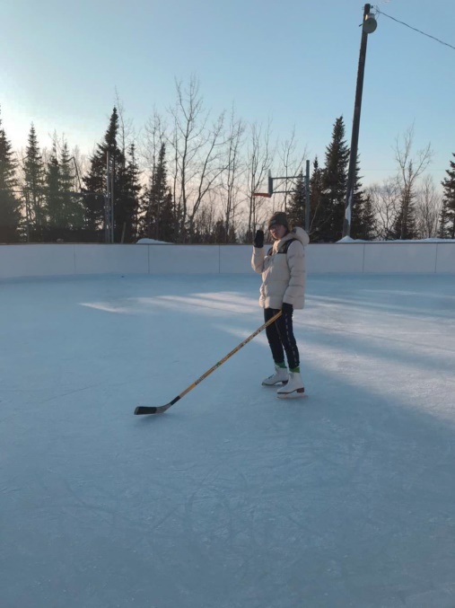 Malgré le froid, en  cours d’ éducation physique nous allions  faire ski de fond  au parc urbain du  village. Et aussi certains jours,  l’après midi avec amis,  nous jouions au hockey sur glace.