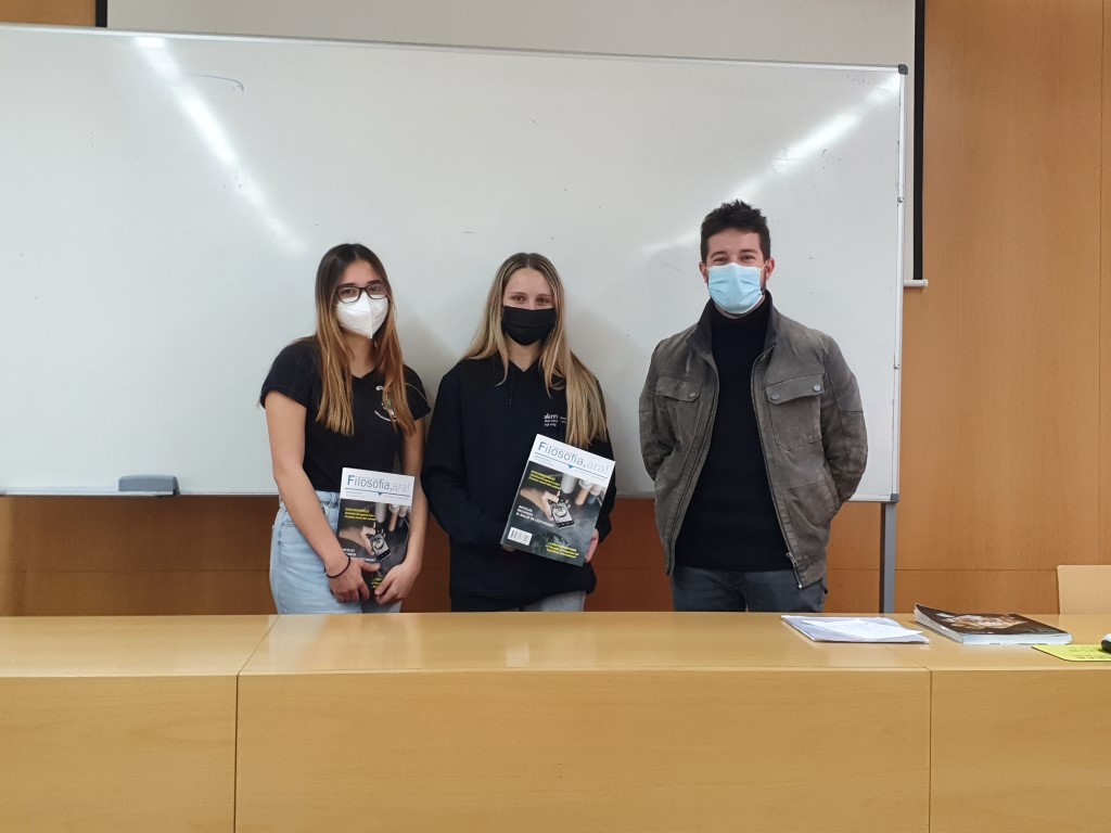 En Rubèn Molina, professor de Filosofia del centre i secretari de l’Associació Filosofia ara els ha lliurat un exemplar de la revista. Bona feina, noies.