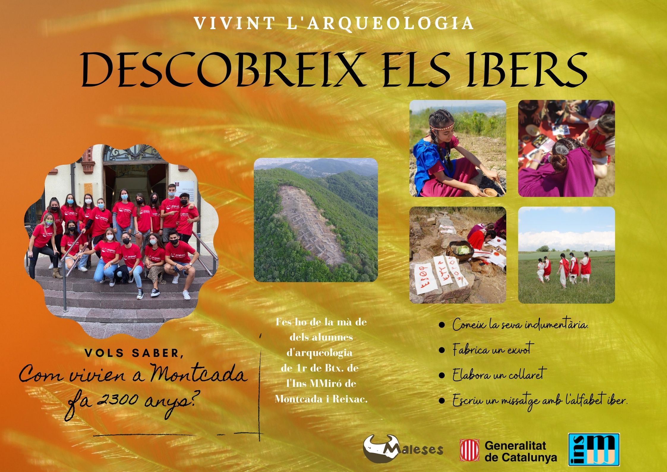 Amb el pas dels anys, donem un cop d’ull enrere i veiem que hem dut a terme moltes activitats i creat molt material d’attrezzo que permeten als alumnes viure la història, entendre-la i aprendre de forma intensa, vivencial i competencial. Hem realitzat túnels del temps al museu, recreacions teatralitzades al jaciment amb més de 250 visitants. Disposem d’un important fons de vestuari i objectes d’època dels ibers, que els alumnes han anat fent any rere any i que s’utilitzen a les recreacions, teatralitzacions, tallers, etc.