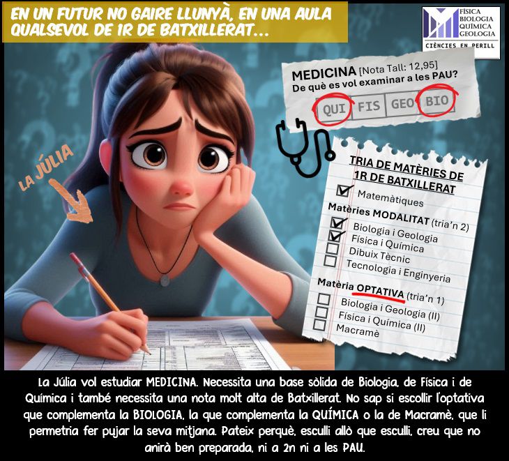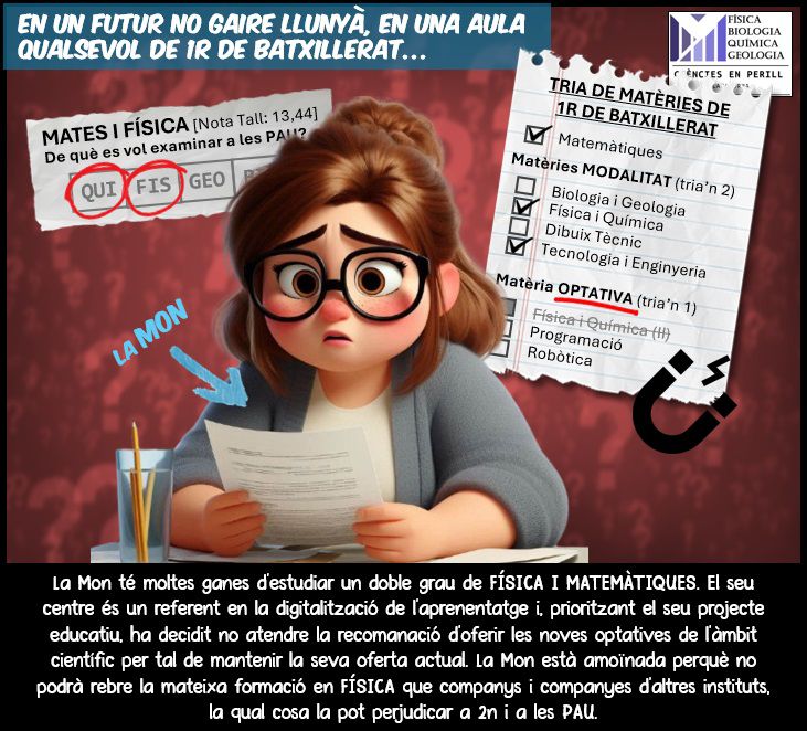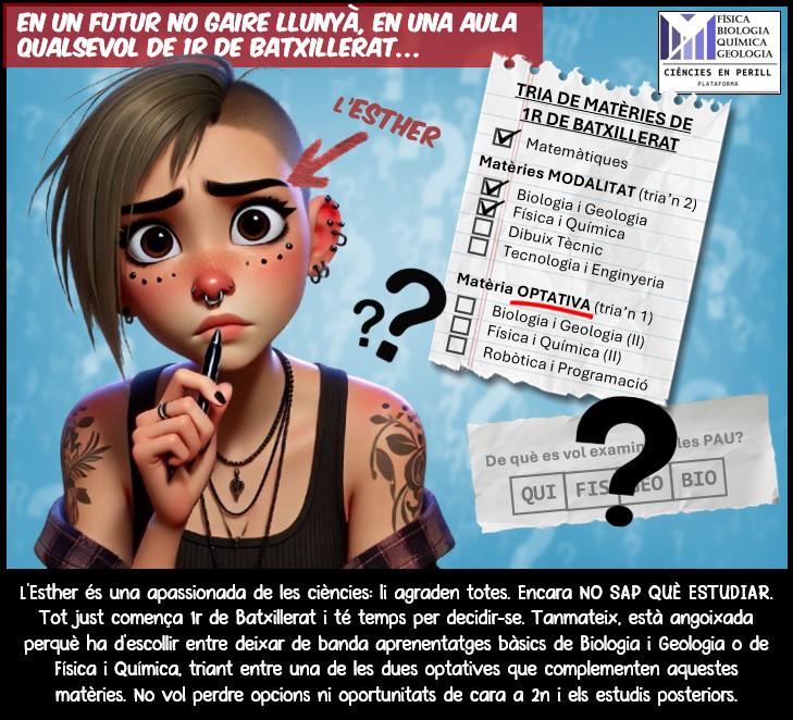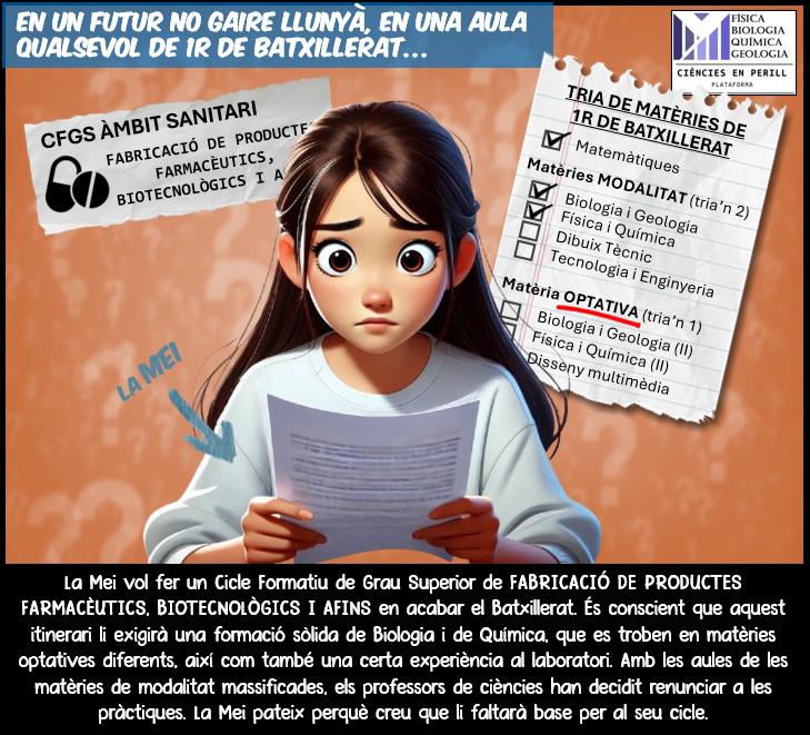 Seguim reclamant i la plataforma “Ciències en Perill” presenta 10 motius per que cada ciència tingui la seva matèria de modalitat, a partir de les valoracions que han fet sobre la nova proposta de modificació curricular del Departament d’Educació i Formació Professional per a 1r de batxillerat.