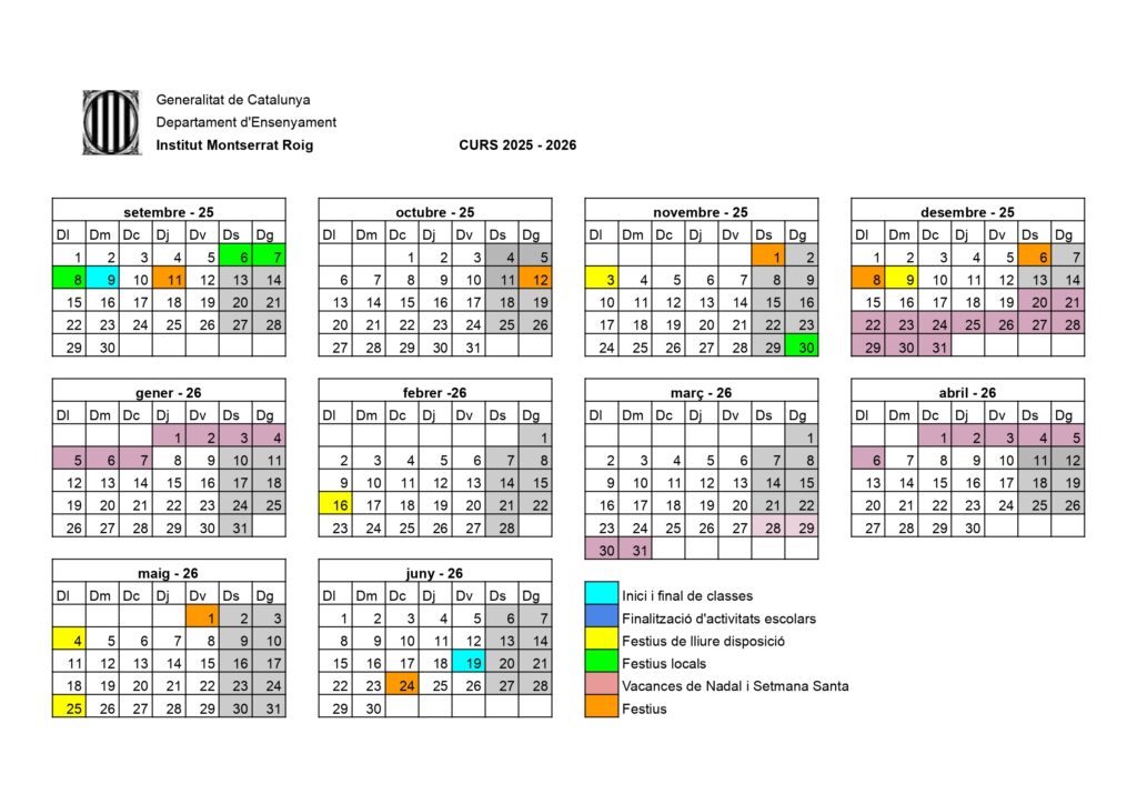 • CALENDARI ESCOLAR DEL CURS 2025 – 26