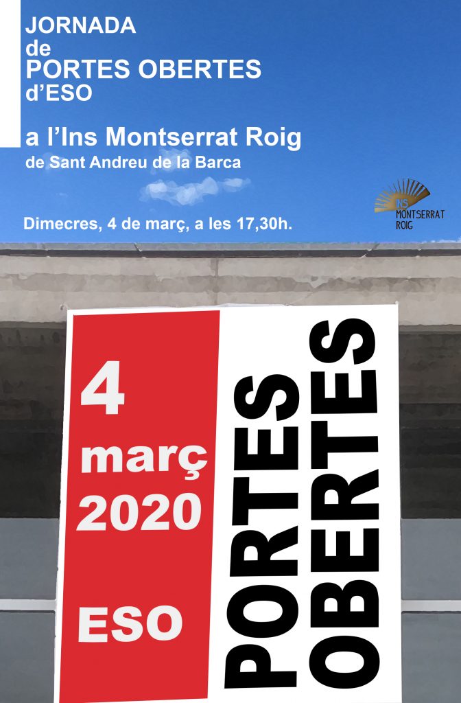 El proper dimecres dia 4 de març a partir de les 17:30 h. tindrà lloc la JORNADA DE PORTES OBERTES del nostre centre.