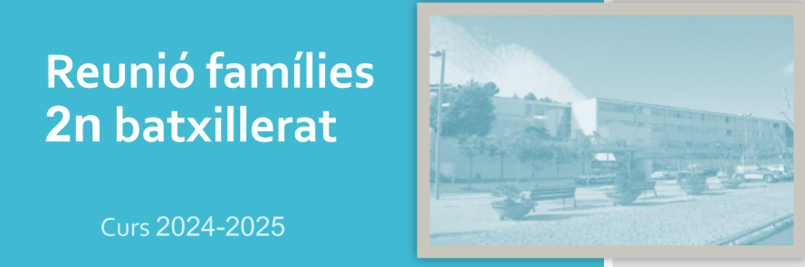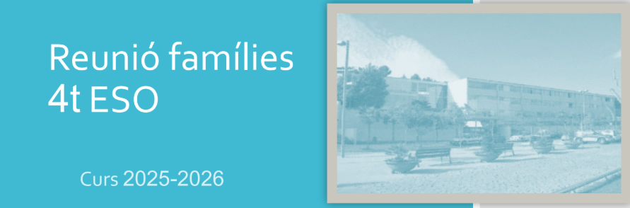 REUNIÓ FAMÍLIES D’INICI DE CURS: 4t D’ESO, 1r i 2n BATXILLERAT Administrador de la Web06/10/25 Us fem arribar les presentacions de les reunions amb les famílies de QUART d’ESO, PRIMER i SEGON de BATXILLERAT, amb tota la informació corresponent de cada curs: 4t d’ESO 1r BATXILLERAT 2n BATXILLERAT
