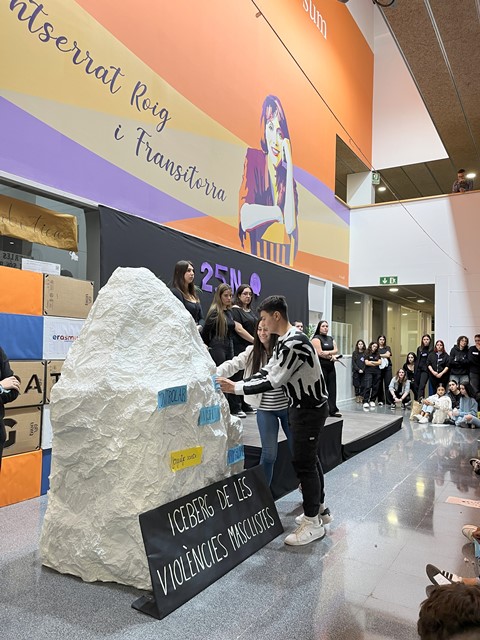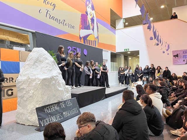 4. A continuació, cada grup classe va pujar a la seva aula, i l’equip corresponent d’integració social va implementar una dinàmica de prevenció i/o conscienciació per la violència de gènere. Es varen treballar temàtiques diverses: des dels mites de l’amor romàntic, a l’explotació sexual o la violència vicària.