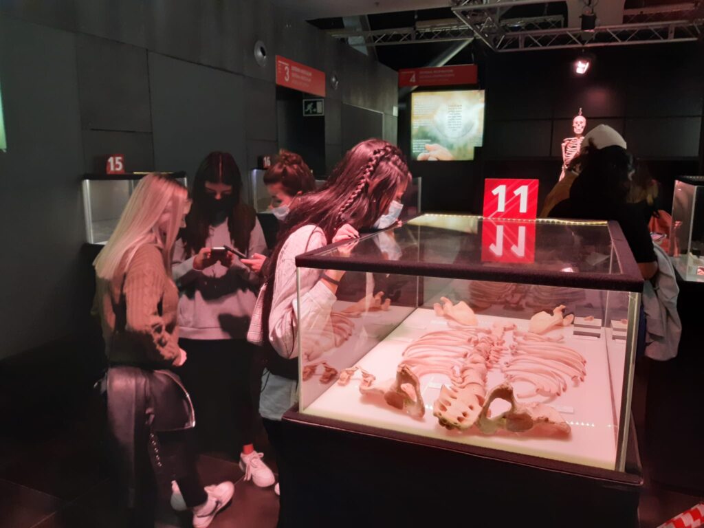 So yesterday, Tuesday 26 October, the two first-year APD groups, and as an in-depth look at the contents worked on by the professional healthcare module, have visited the Human bodies, anatomy of life museum. This is an exhibition in which students have been able to enjoy the experience of discovering what the skin hides: muscles, bones, nerves and other systems such as the digestive or excretory system, all of which are made visible through plastination.