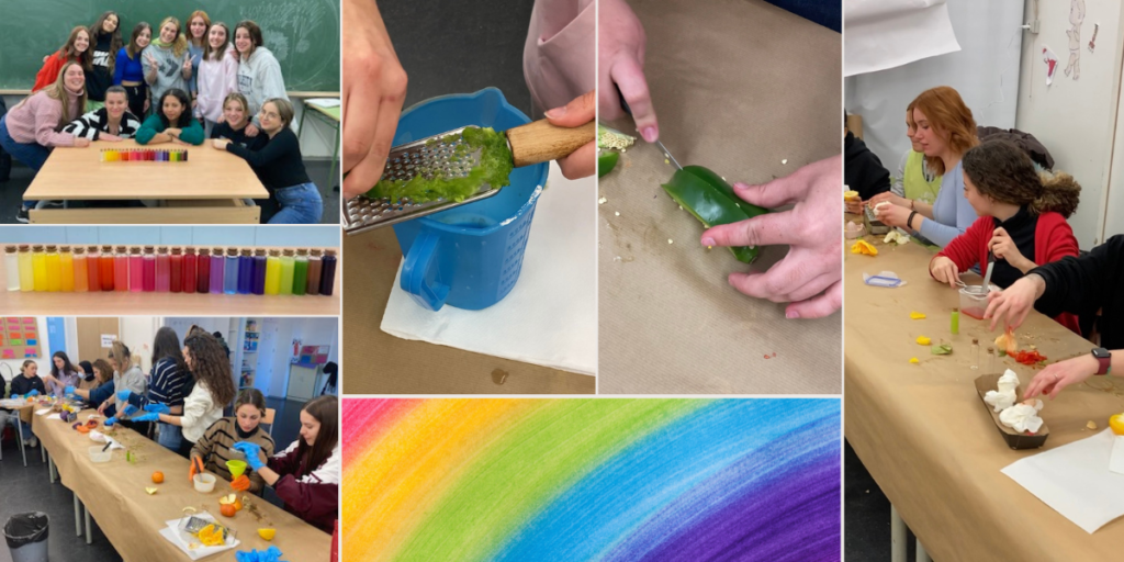 El dijous 2 de febrer la classe de 2n d’Educació Infantil de Grau Superior va realitzar, des del mòdul d’Expressió i Comunicació, l’activitat Aigua de colors. El repte consisteix a aconseguir el major número de colors barrejant aigua amb diferents fruites i verdures. Alguns colors només es poden aconseguir barrejant diferents aigües de colors.