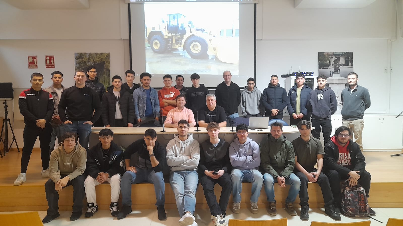 Hem rebut la visita de l’empresa Finanzauto Caterpillar, de la ma dels senyors Óscar Moyano, cap de postvenda, i Jordi Carreras, cap de taller. Ens han explicat la tipologia de serveis que ofereixen, reparacions, les màquines excavadores i els motors Caterpillar. La grandària de la maquinaria Caterpillar és comparable als valors de l’empresa, valors empresarials i sobretot humans.